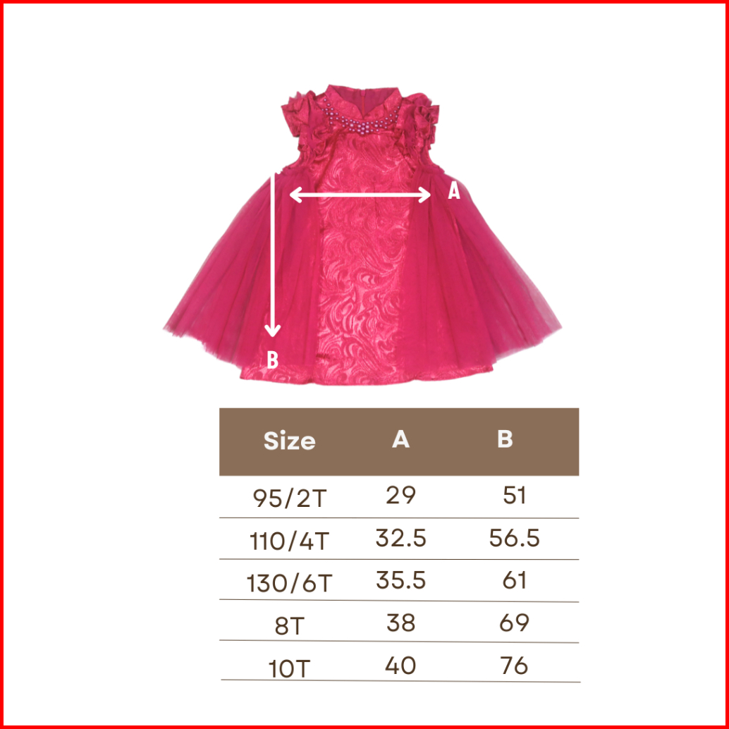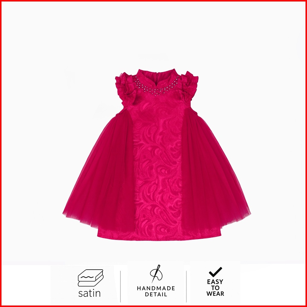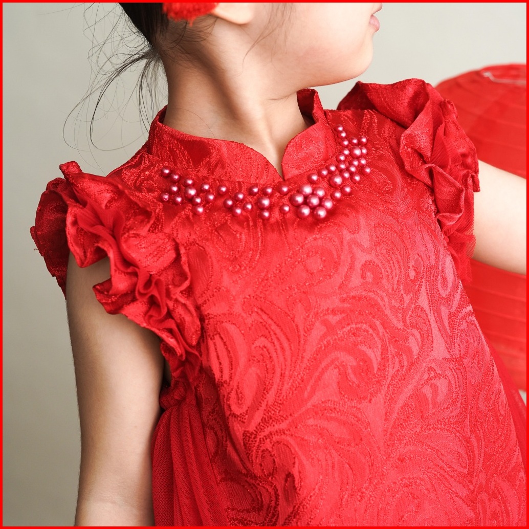 Amber 2-10t Ling Ling Jaquard Qipao Dress Cheongsam Pesta Anak Perempuan Merah Sangjit Ma76