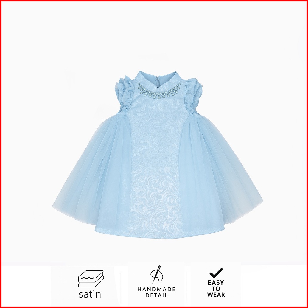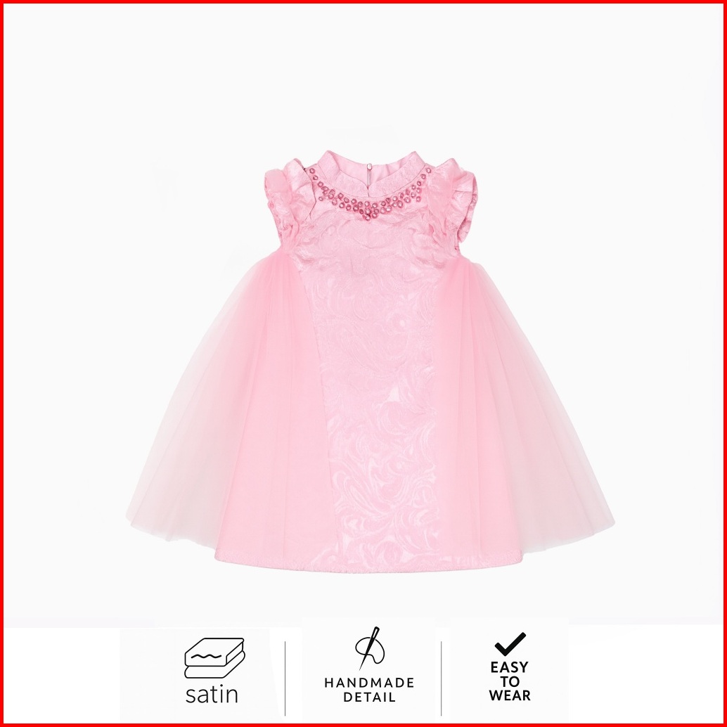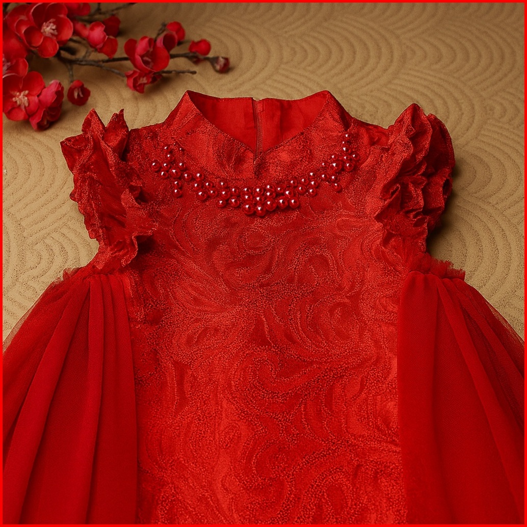 Amber 2-10t Ling Ling Jaquard Qipao Dress Cheongsam Pesta Anak Perempuan Merah Sangjit Ma76