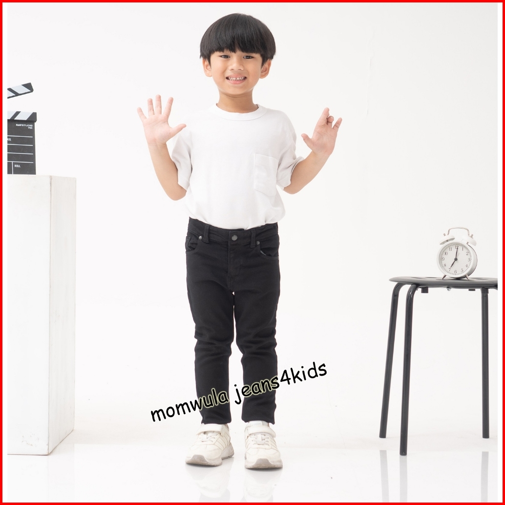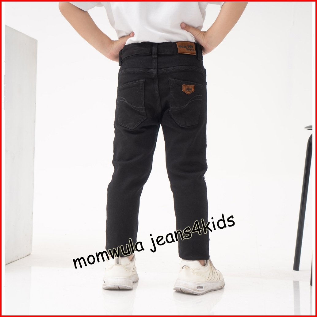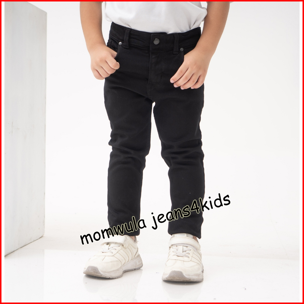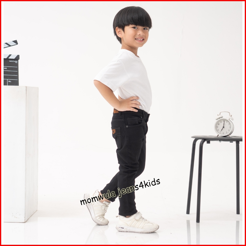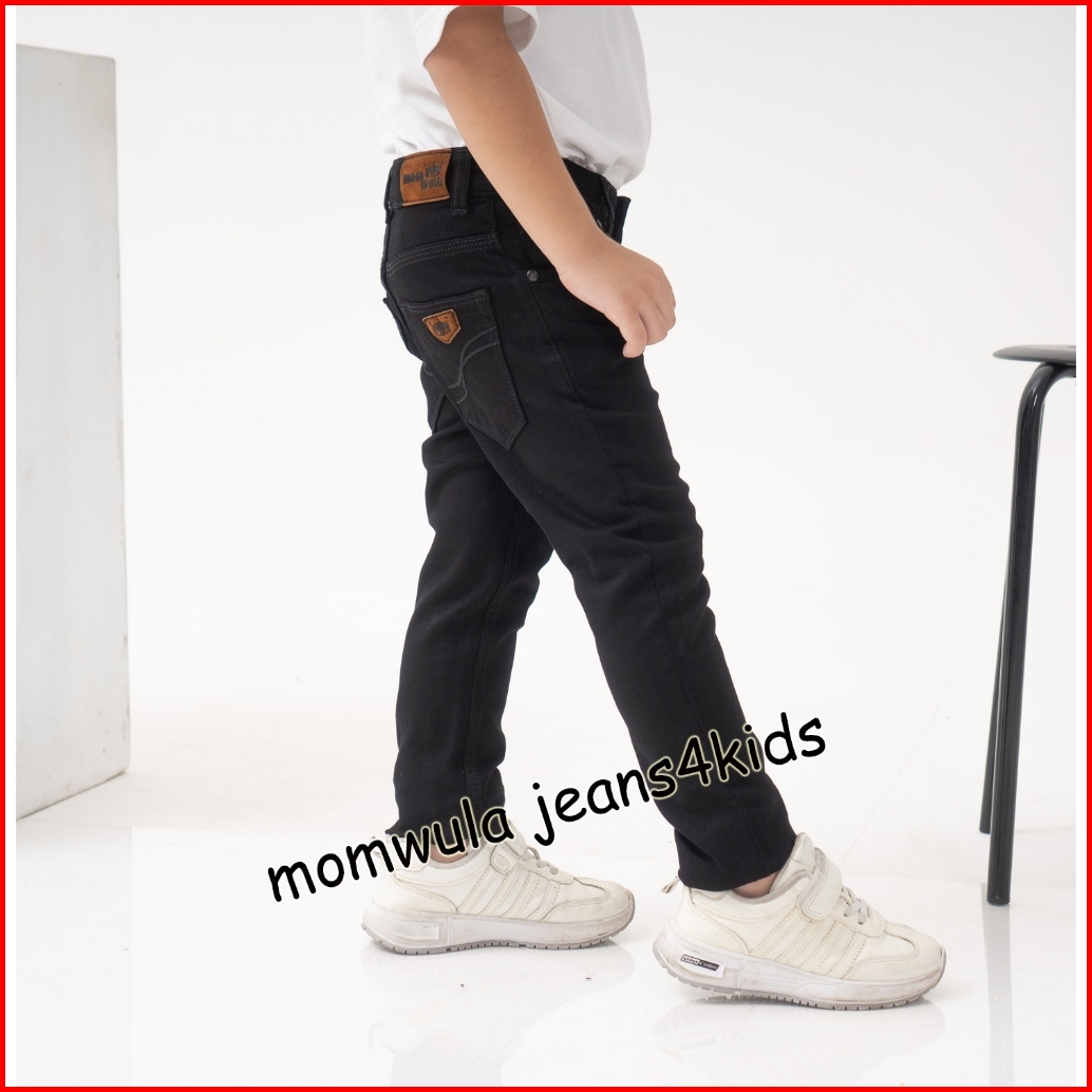Celana Jeans Hitam Anak Soft Jeans Stretch Momwula Slim Fit Ukuran 4-10 Tahun Kode Rb -01