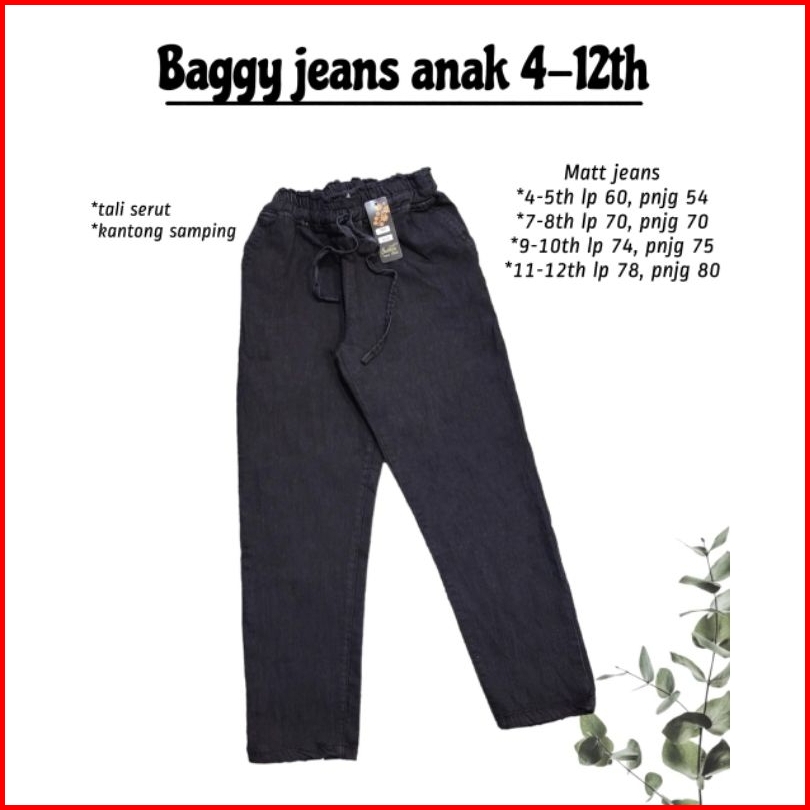 Celana Baggy Jeans Anak Warna Hitam Pekat Usia 4th -12 Tahun