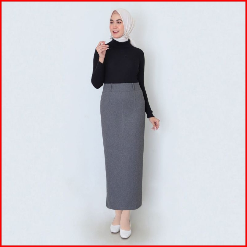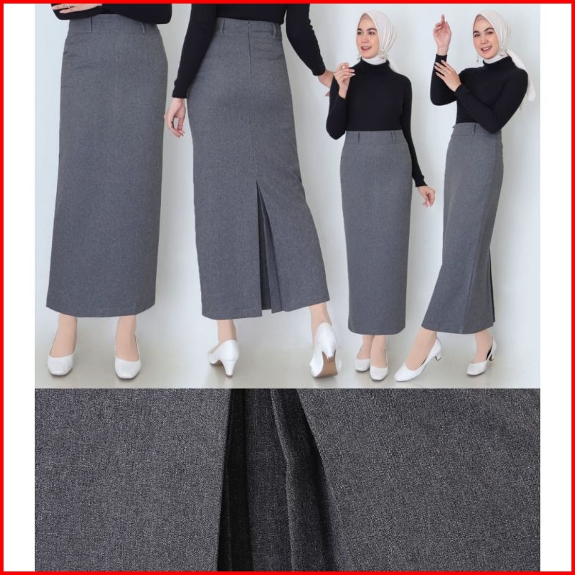 Rok Kerja Wanita Panjang Span Rempel Belakang