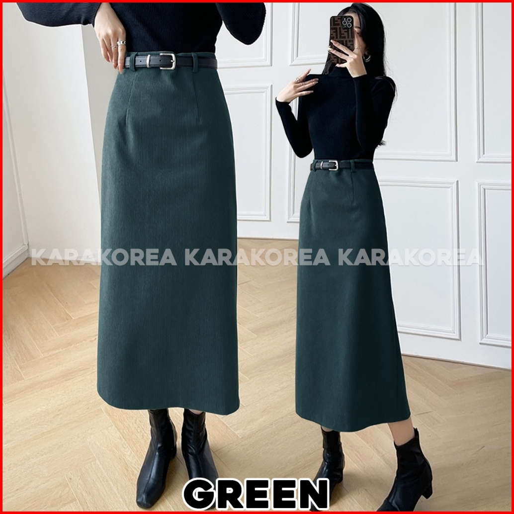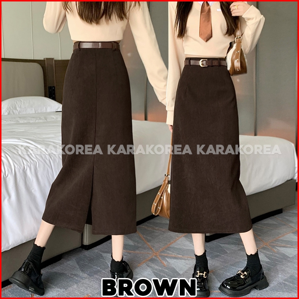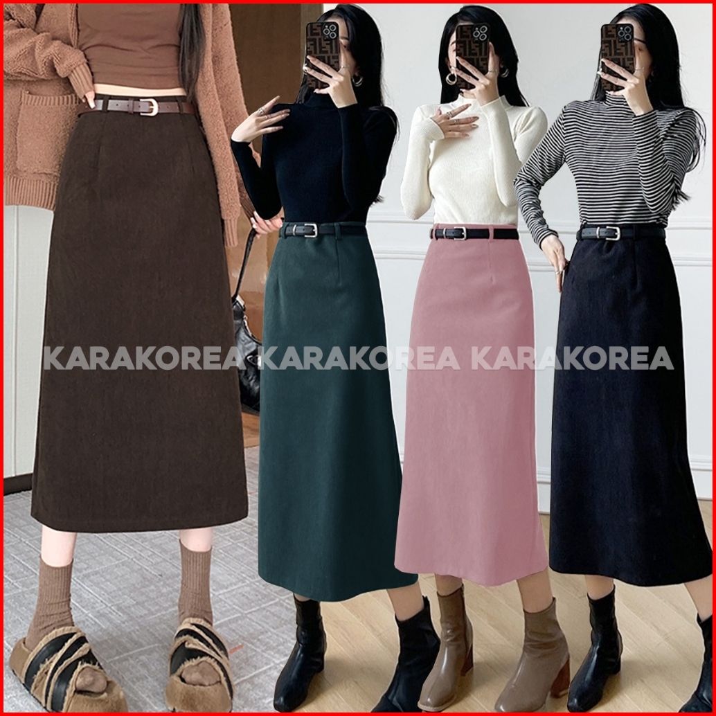 Karakorea 507 Corduray Velvet Long Skirt With Belt Korean Woman Skirt Rok Panjang Rok Panjang Jumbo