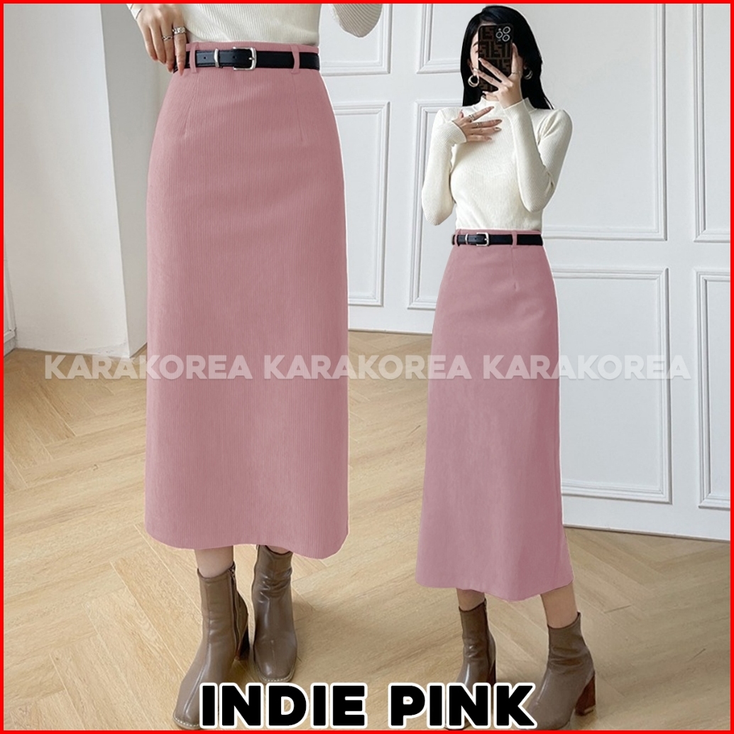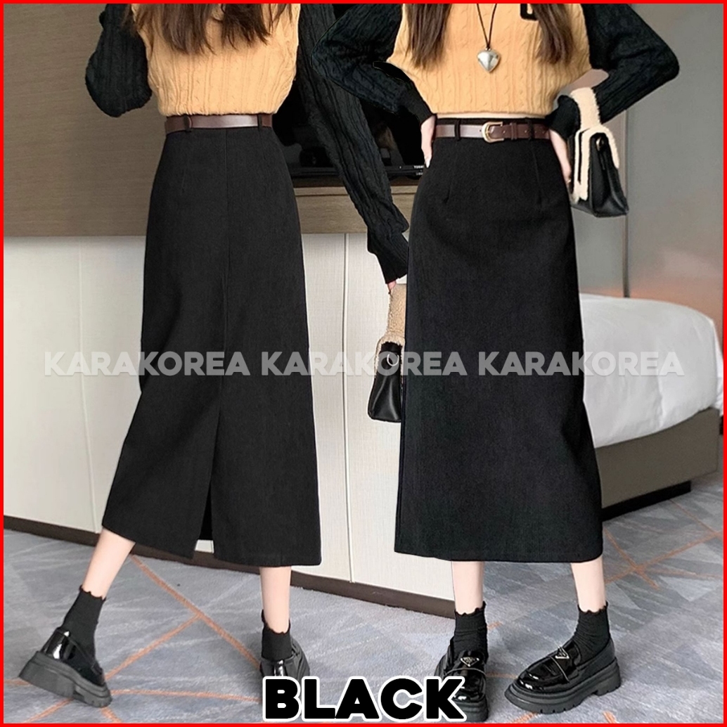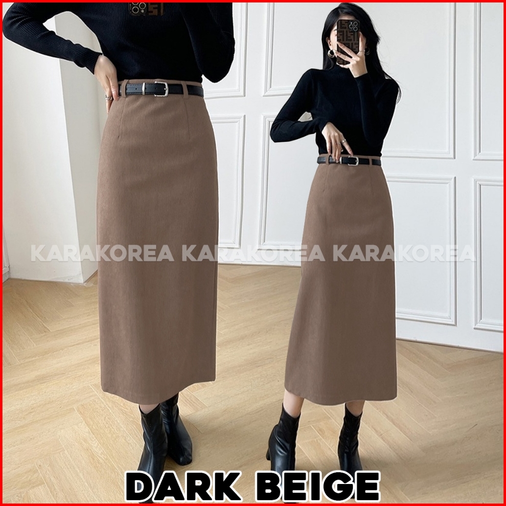 Karakorea 507 Corduray Velvet Long Skirt With Belt Korean Woman Skirt Rok Panjang Rok Panjang Jumbo