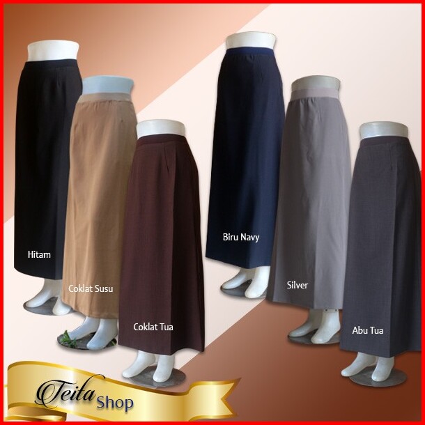 Rok Kerja Panjang Rok Kerja Wanita Pinggang Karet Model A-line Muslimah Syar I Formal Kuliah