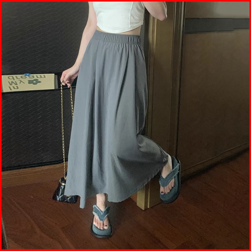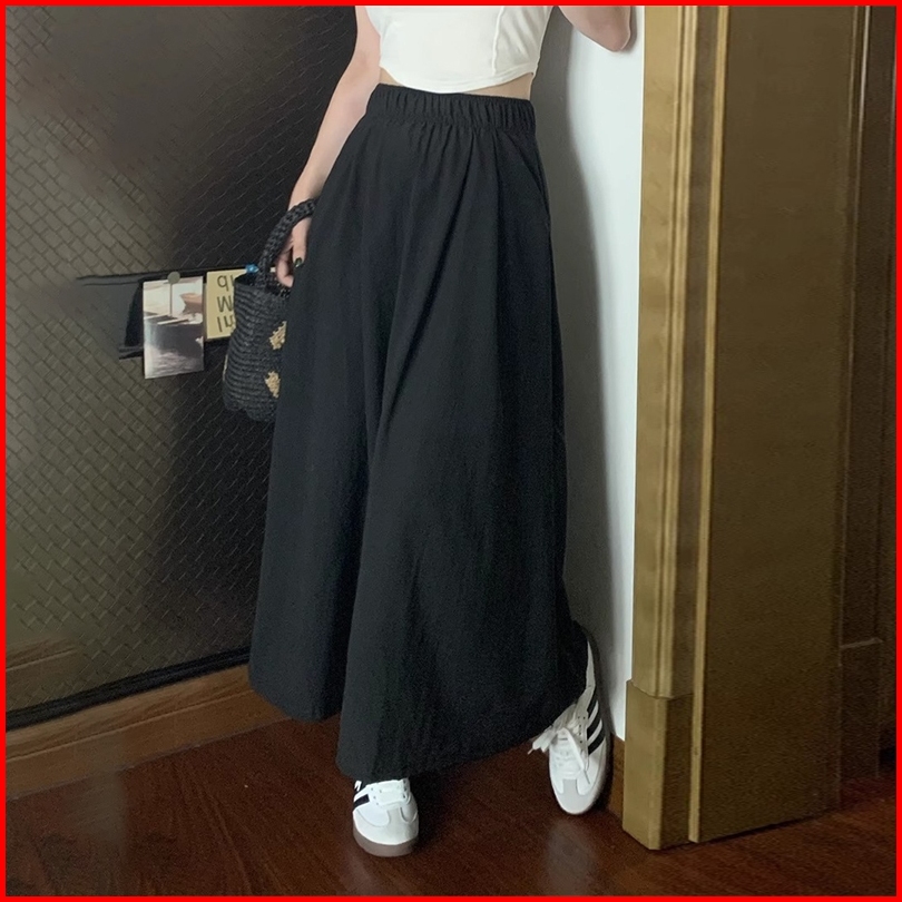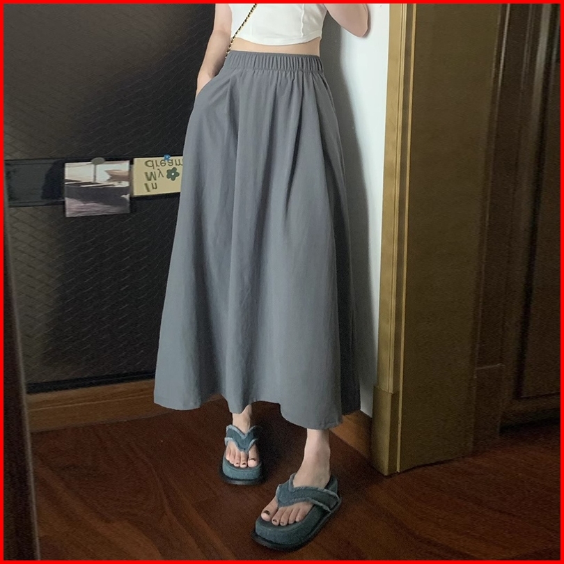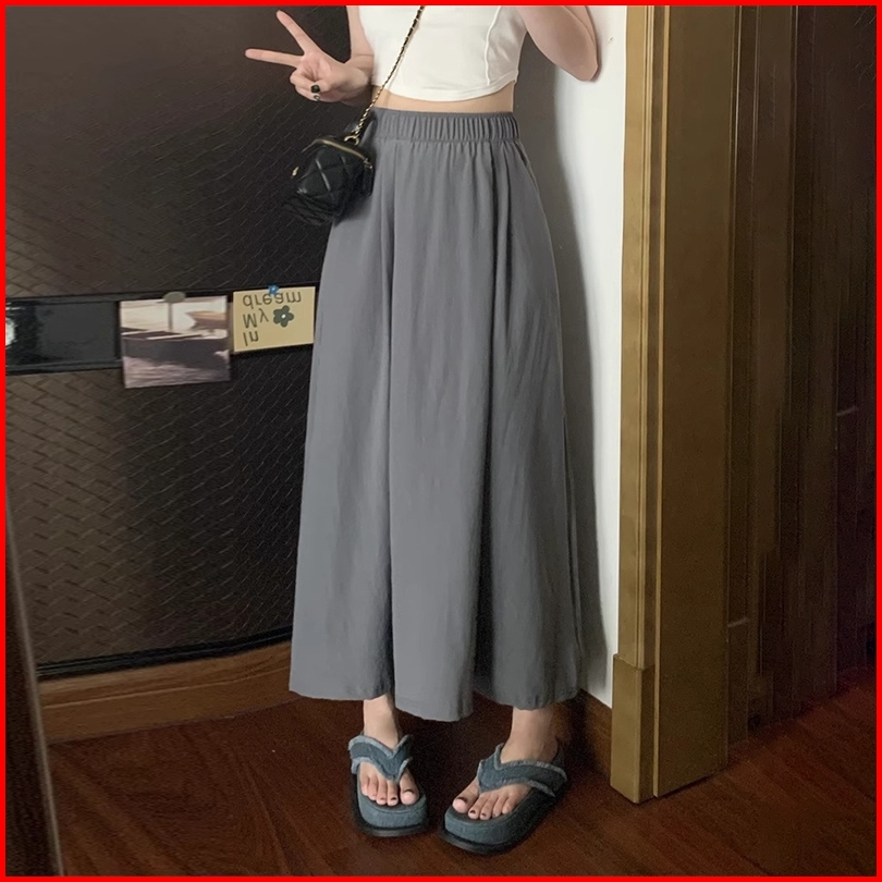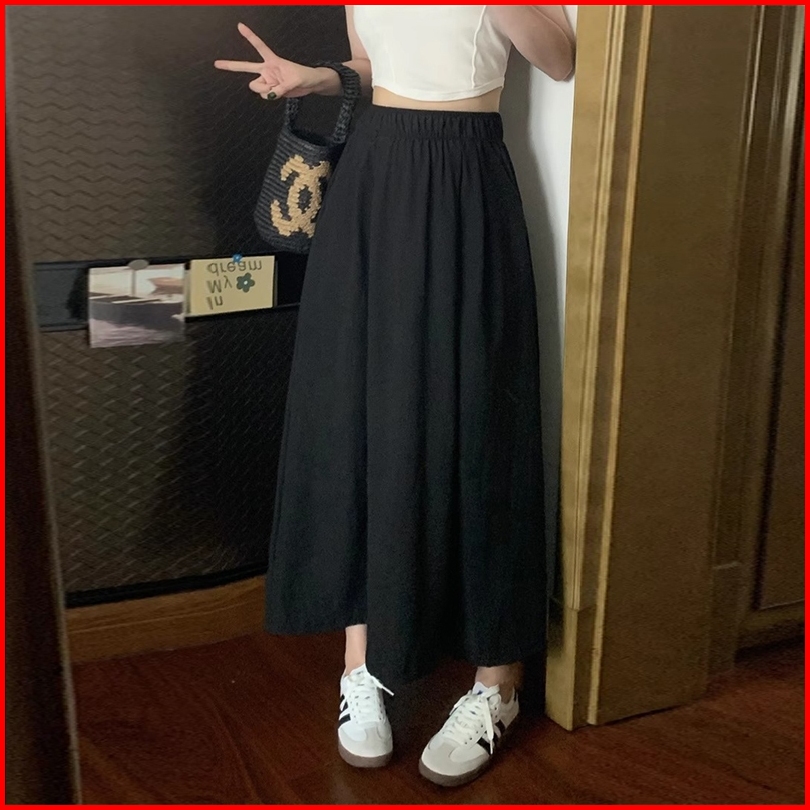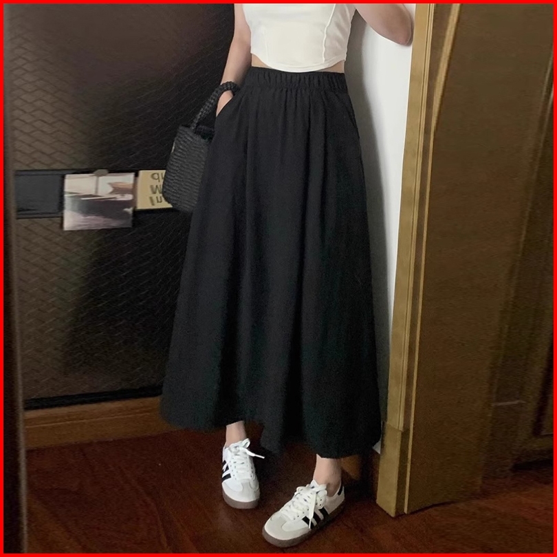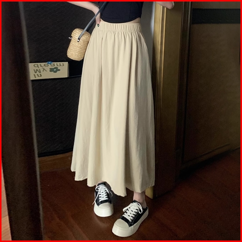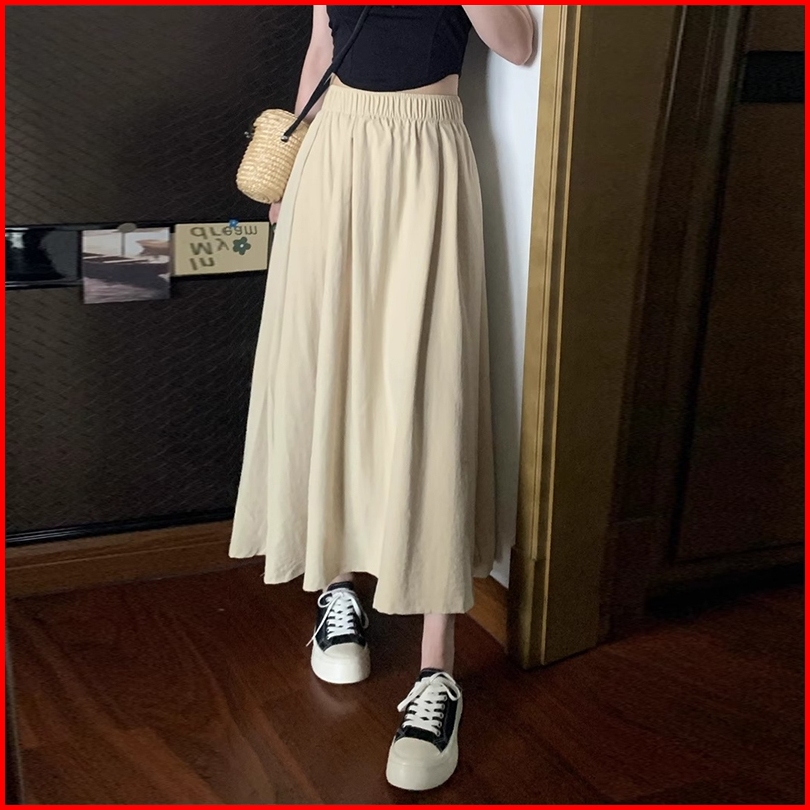 Rok Lipit Wanita - Skirt Midi A-line Kasual Pinggang Tinggi Gaya Korea - Rok Panjang Pinggang Elastis Gaya Terbaru