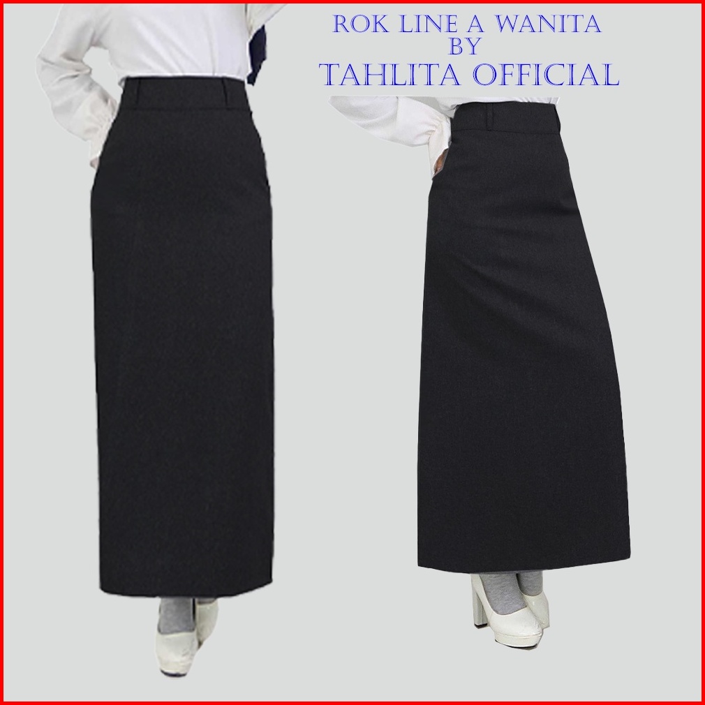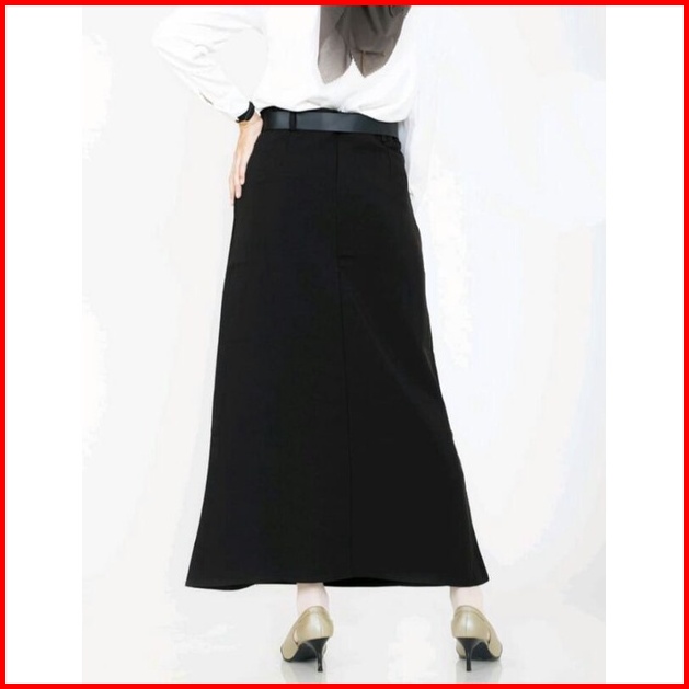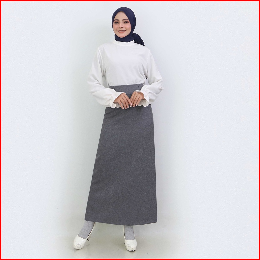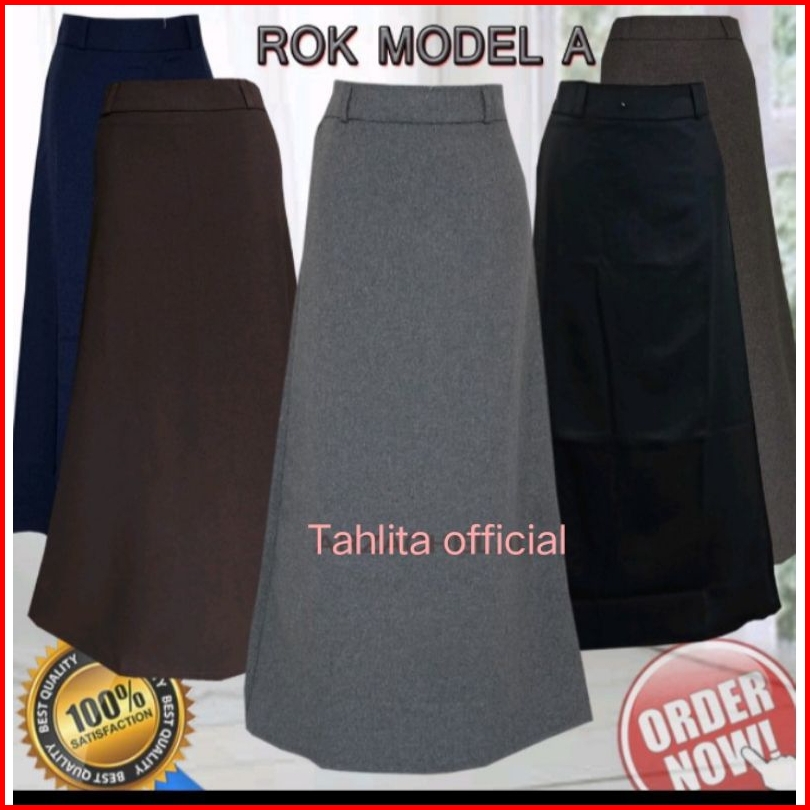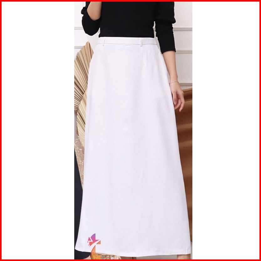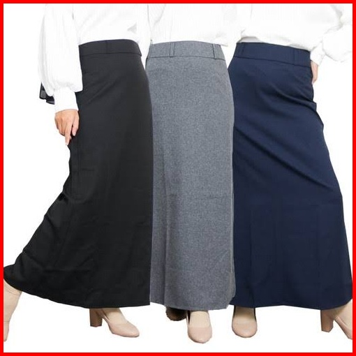 Rok Kerja Panjang Wanita Line A Ukuran S - 5l Jumbo Bahan Gabardine Premium Hitam Abu Mocca Coklat Maxi Skirt Polos Span