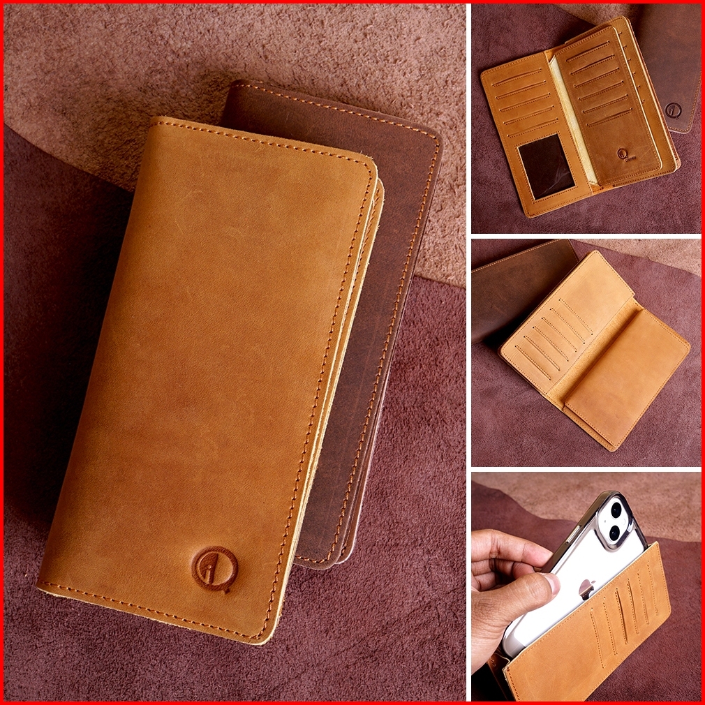 F012qi Ch - Dompet Panjang Lipat Pria Cowok Wanita Handphone 18 Slot Kartu Full Kulit Sapi Asli Kualitas Impor