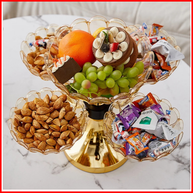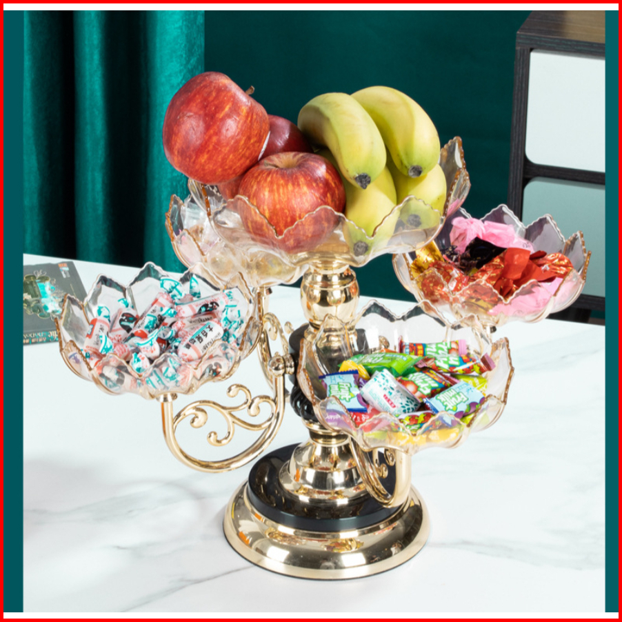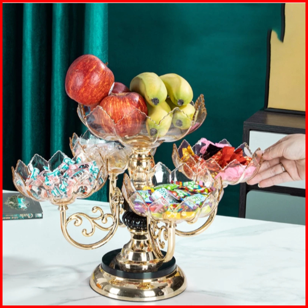 Best-c1007 Ornamental Fruit Plate Putar 360 Derajat Piring Saji Hidangan Buah Kue Crystal Luxury Fruit Candy Food Bowl M
