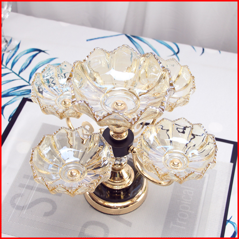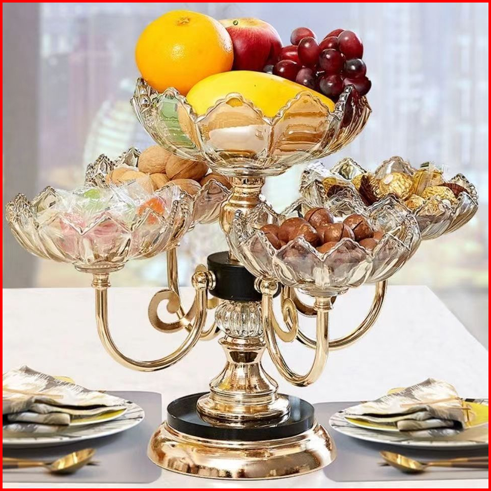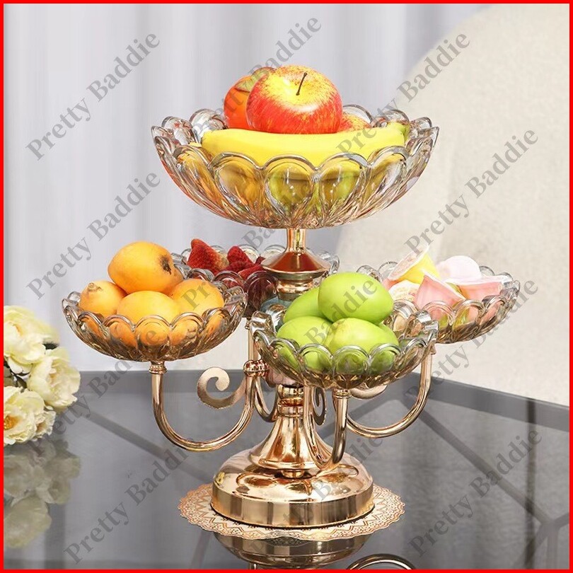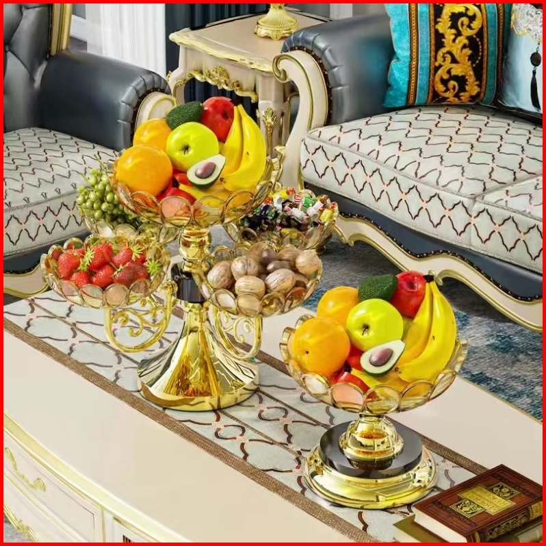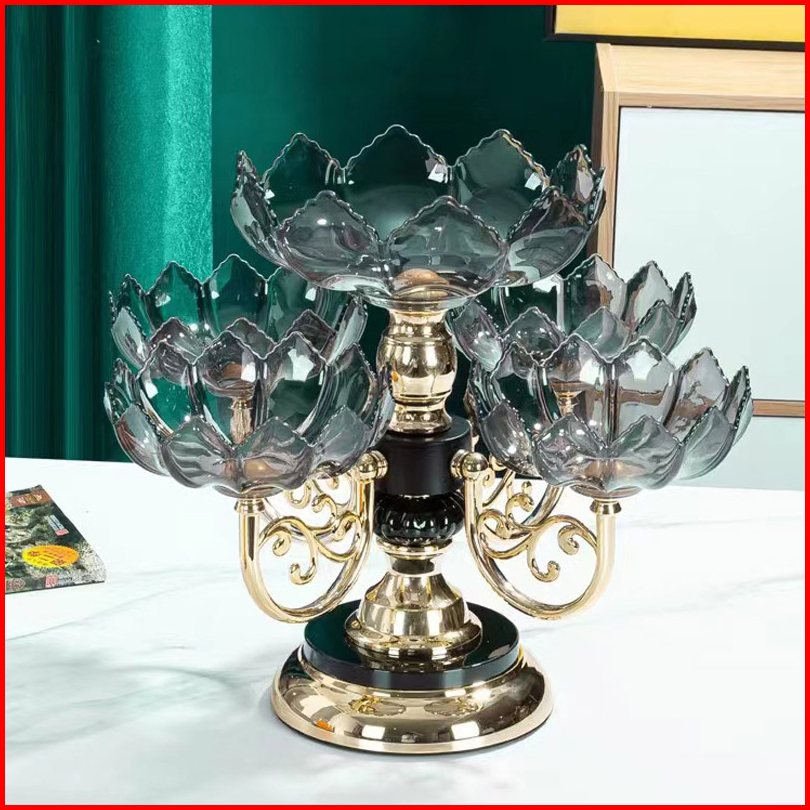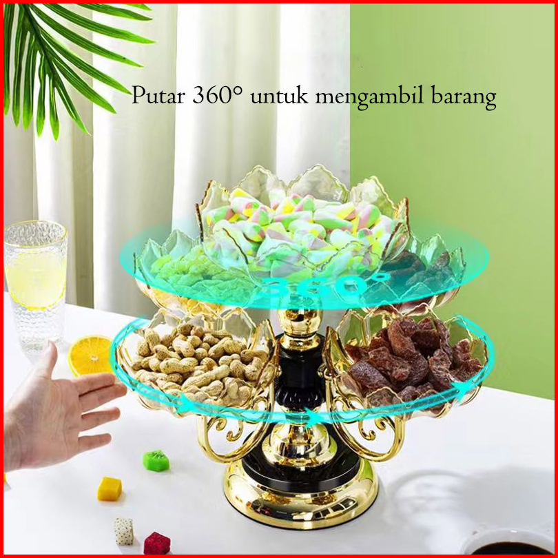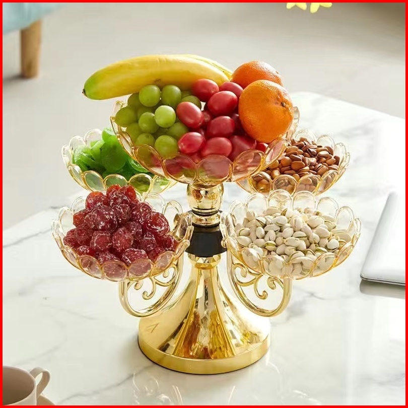 Loyang Kue Buah Kristal Plastik Berputar Piring Buah Tradisional Mangkuk Makanan Permen Buah