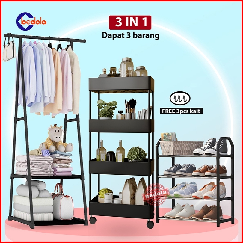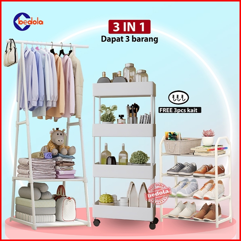 Combo 3 In 1 Customizable Triangle Rak Baju Square Rak Susun Serbaguna 4 Tingkat Rak Sepatu 4 Tingkat