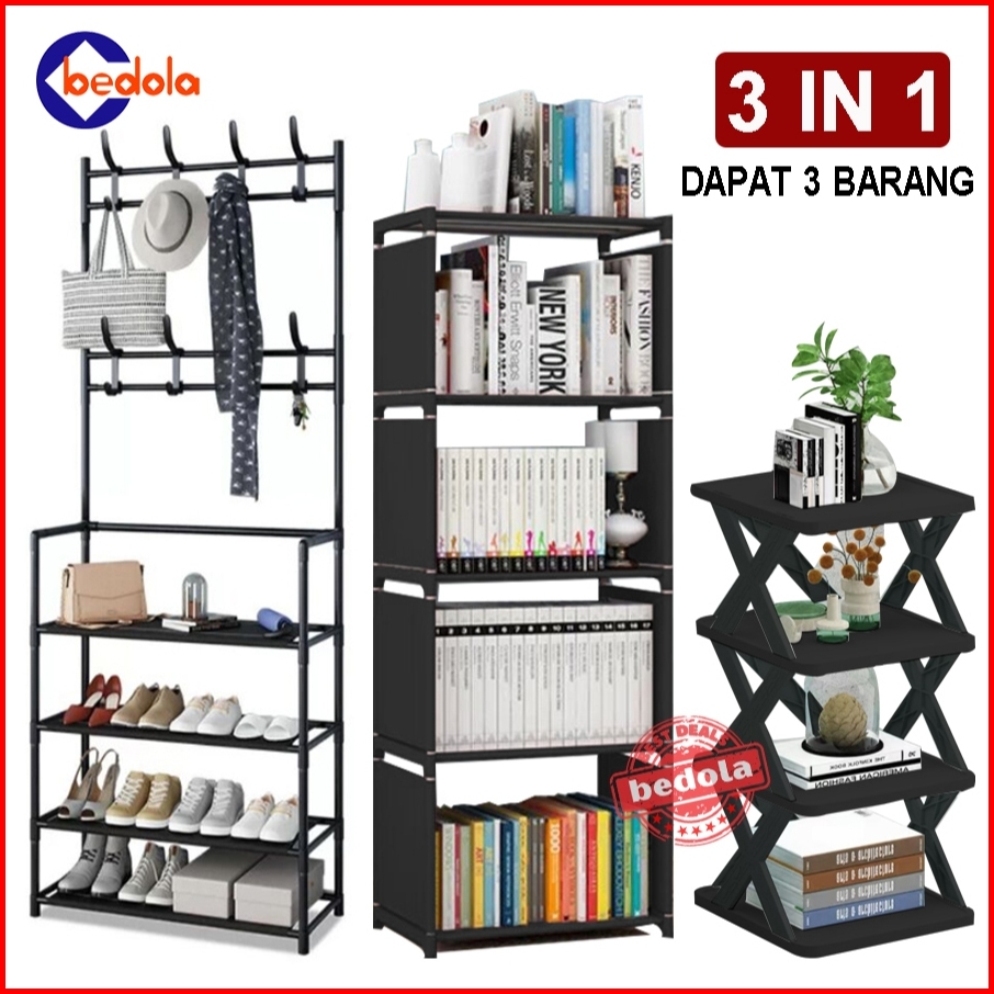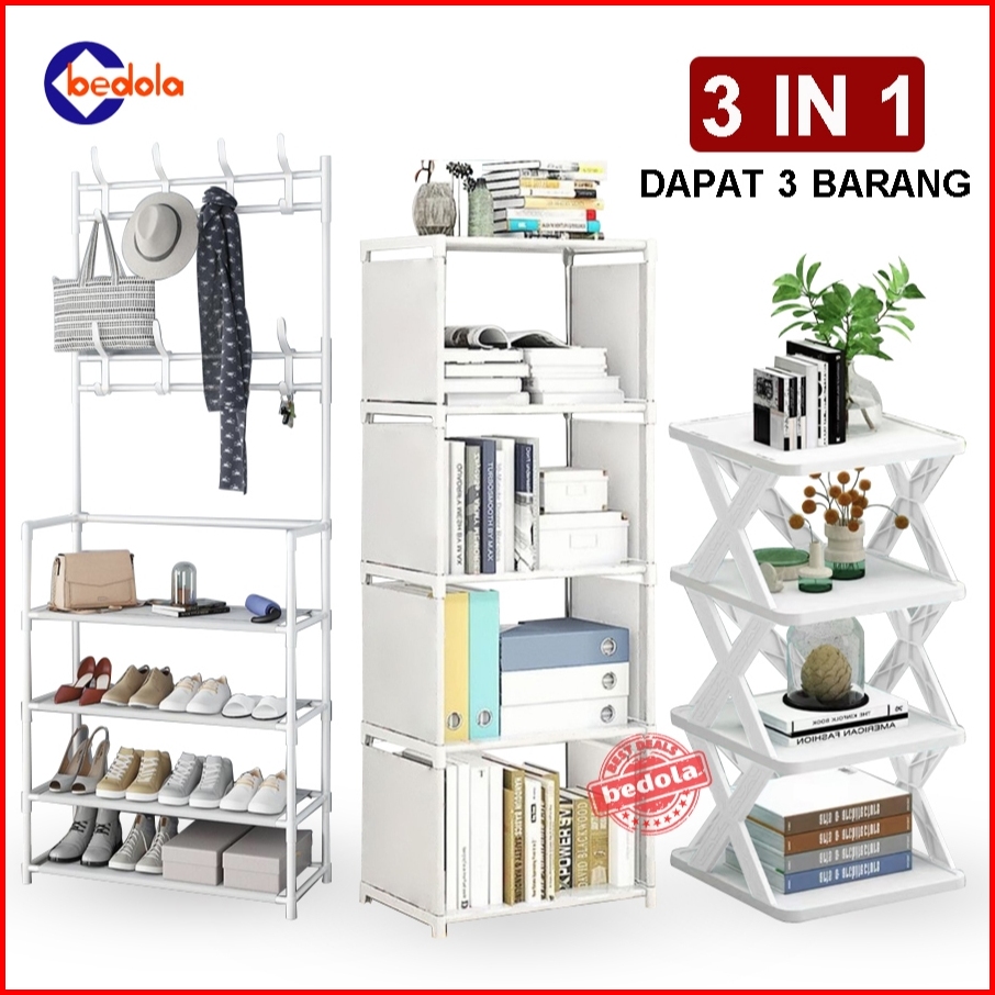 Combo 3 In 1 Rak Sepatu Hanger Mutifunsi Rak Buku 4 Susun Rak Serbaguna 4 Tingkat