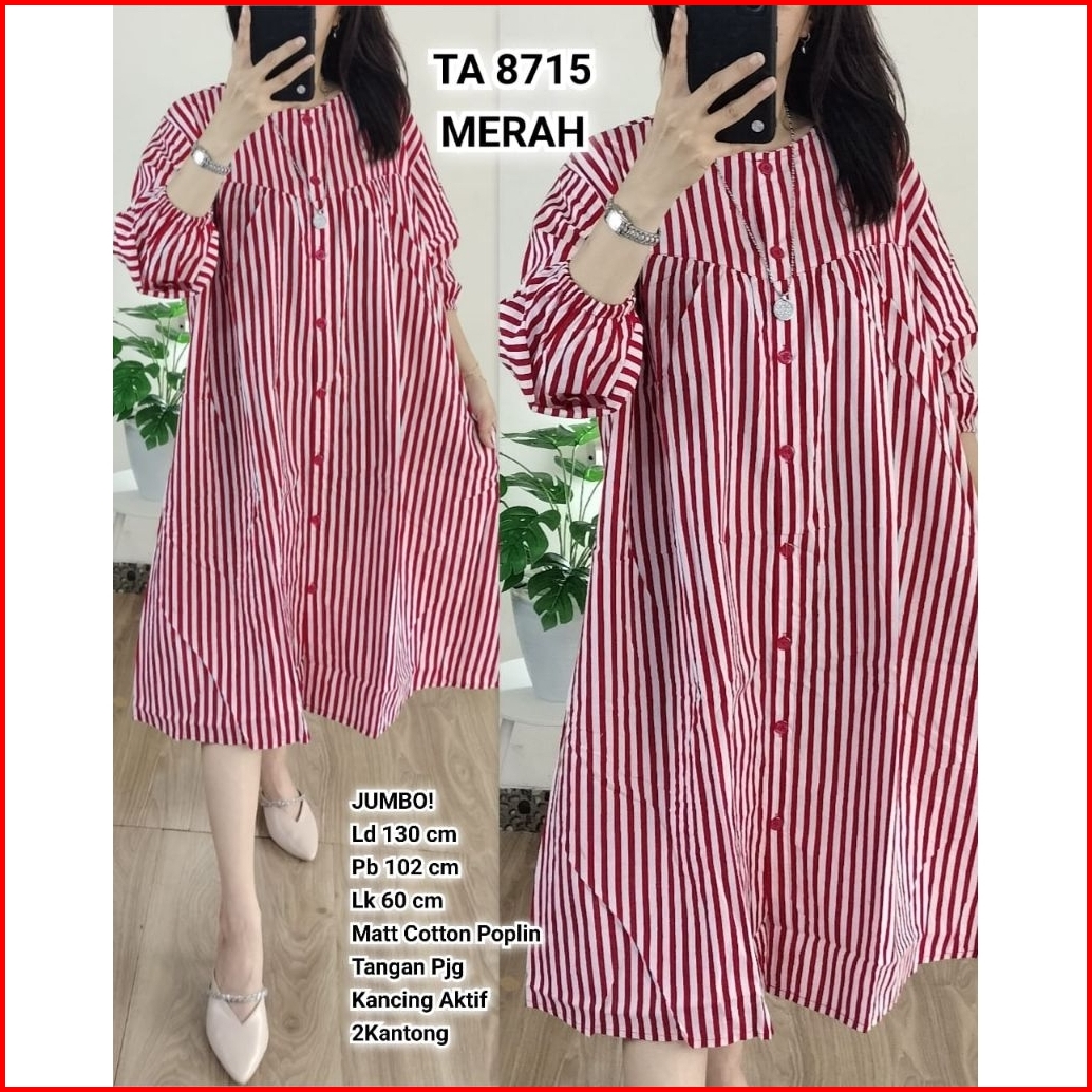 Ta 8715. Tunik Jumbo Cotton Poplin Salur Babydoll