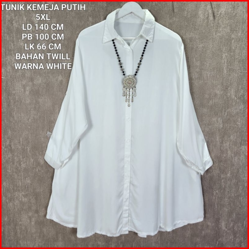 Tunik Kemeja Putih Jumbo Ld 140 Cm Model Polos Kekinian