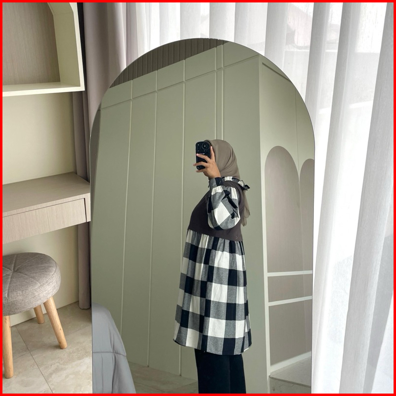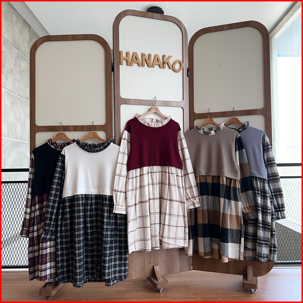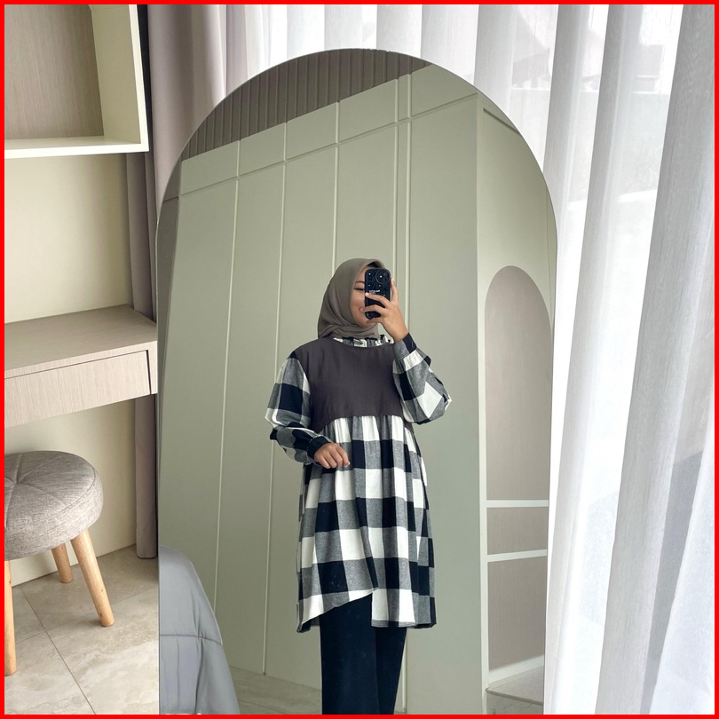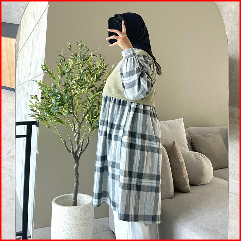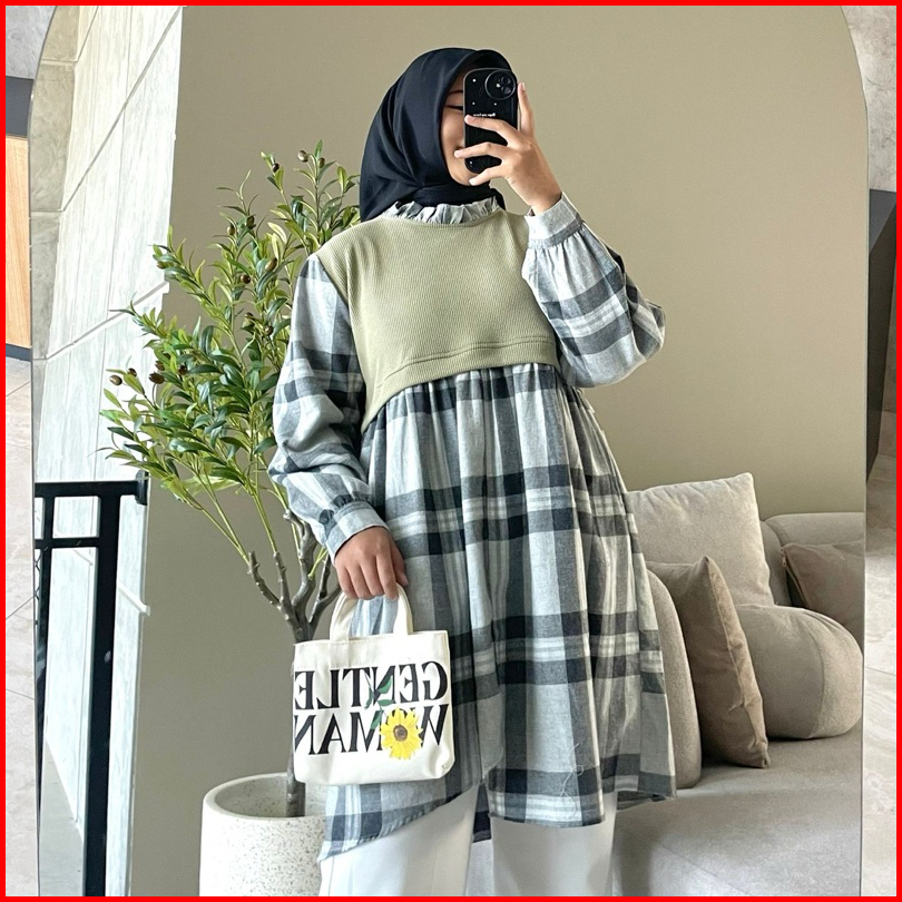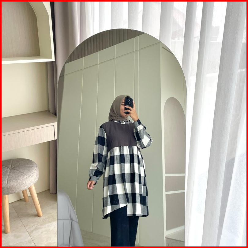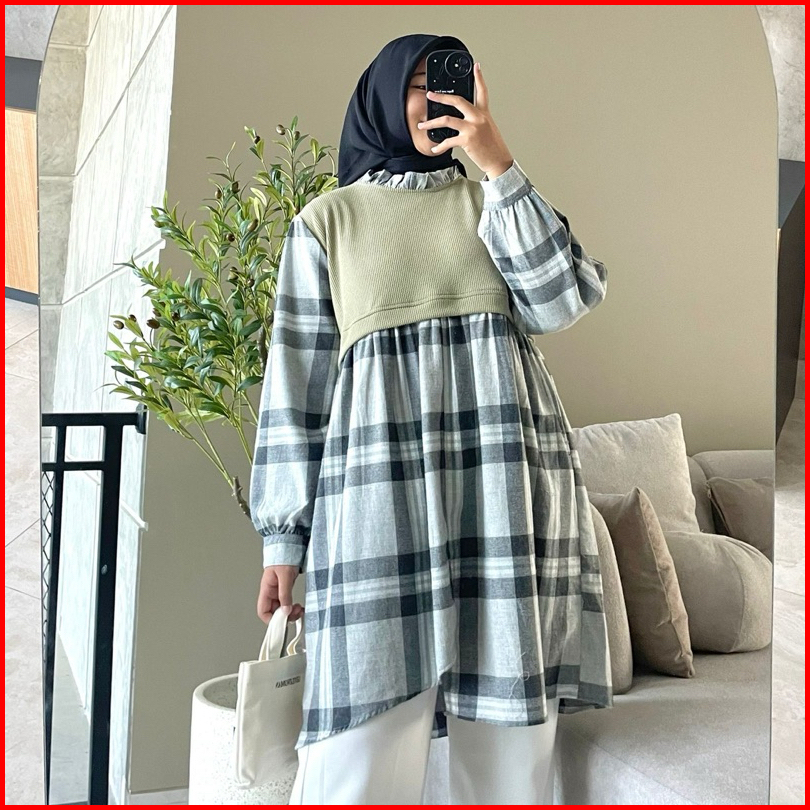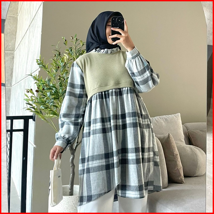 Hanako 496 Tunik Rempel Motif Kombinasi Tunik Flanel Knit Tunik