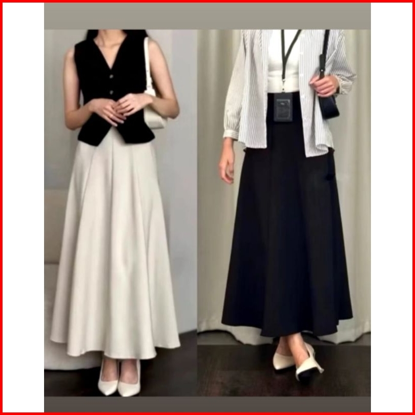 Audy Skirt Korean Loose Maxi Skirt Rok Wanita Anti Kusut Polyester Rok Flare Wanita Rok Basic Polos Maxi Rok Panjang Wan