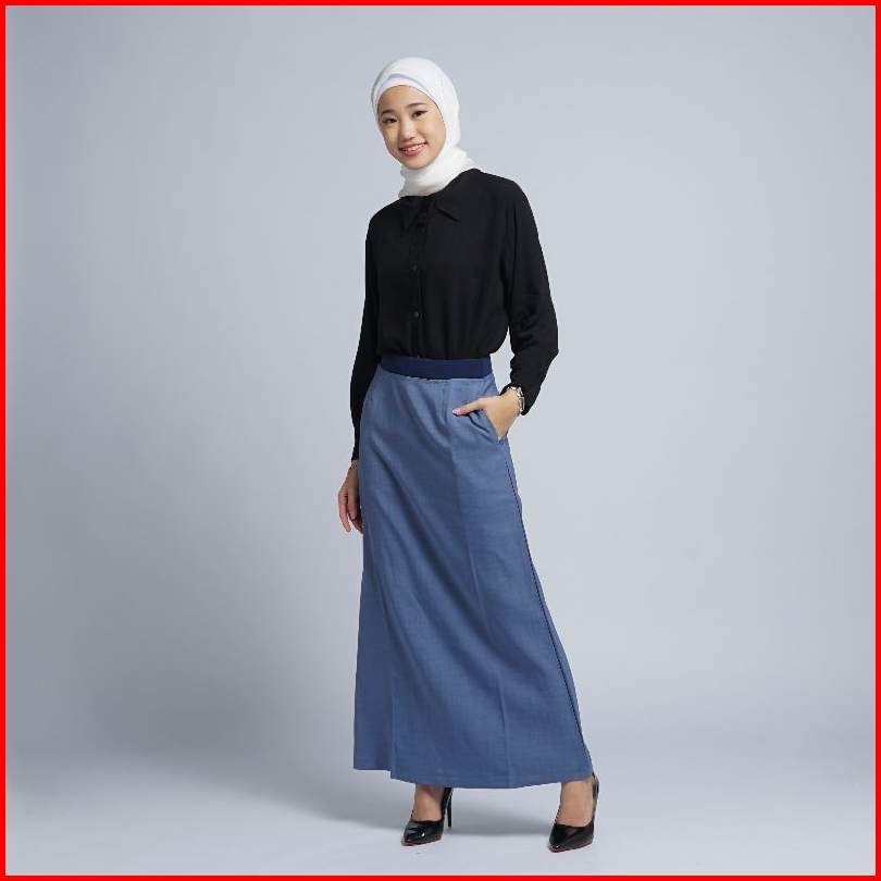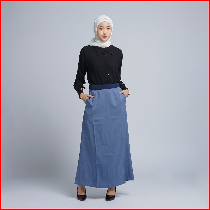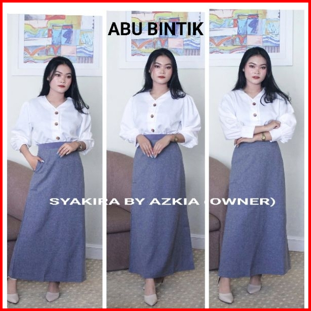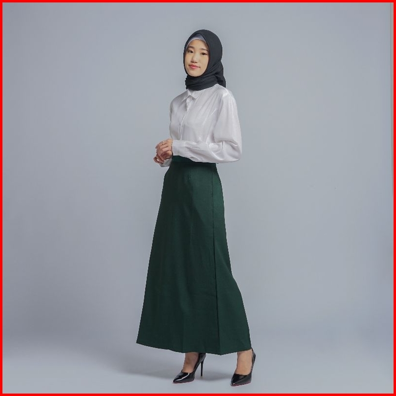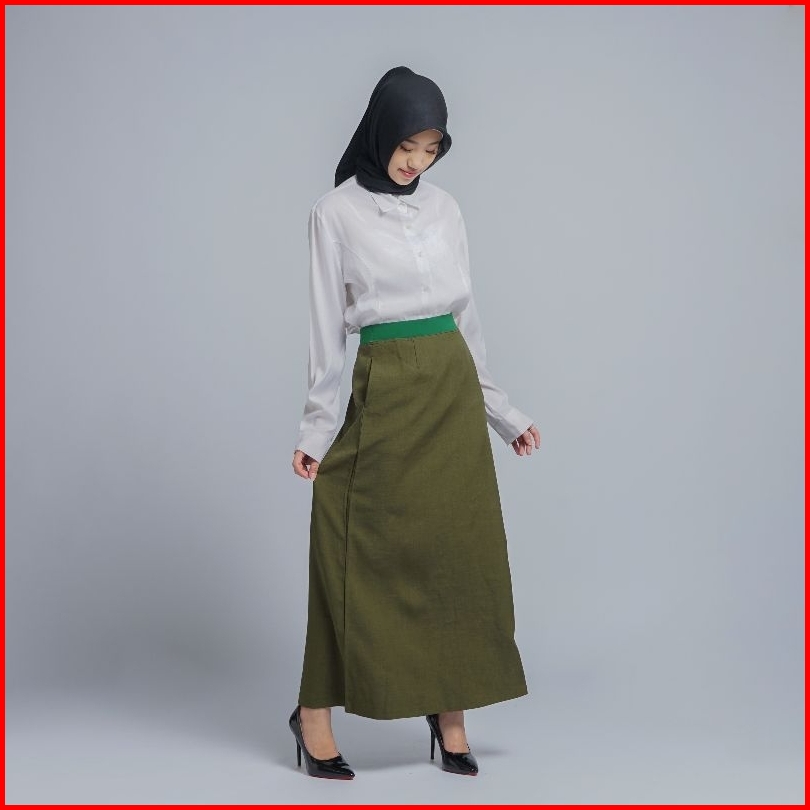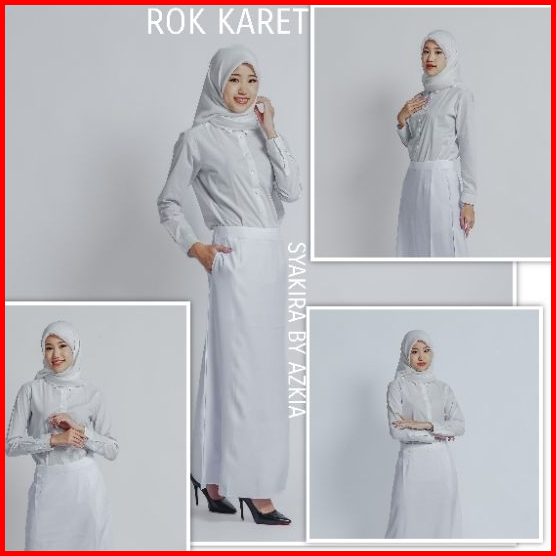 Rok Kerja Wanita Terbaru A Line Pinggang Karet Polyester Premium Stretch Melar Import Putih Silver
