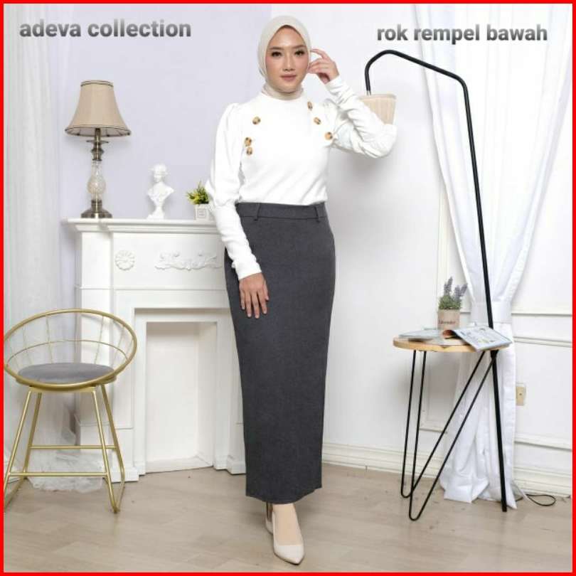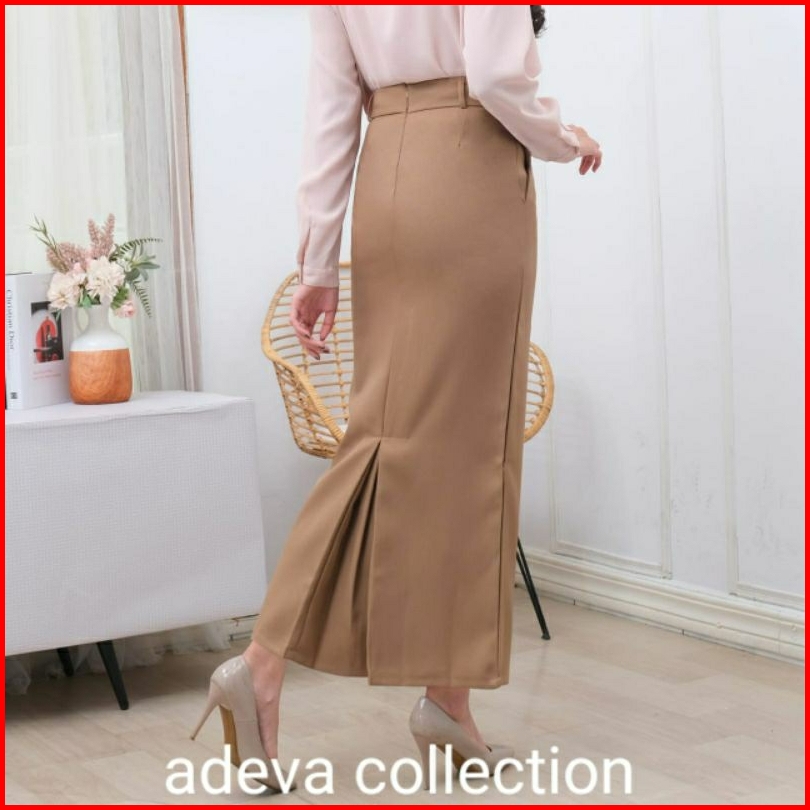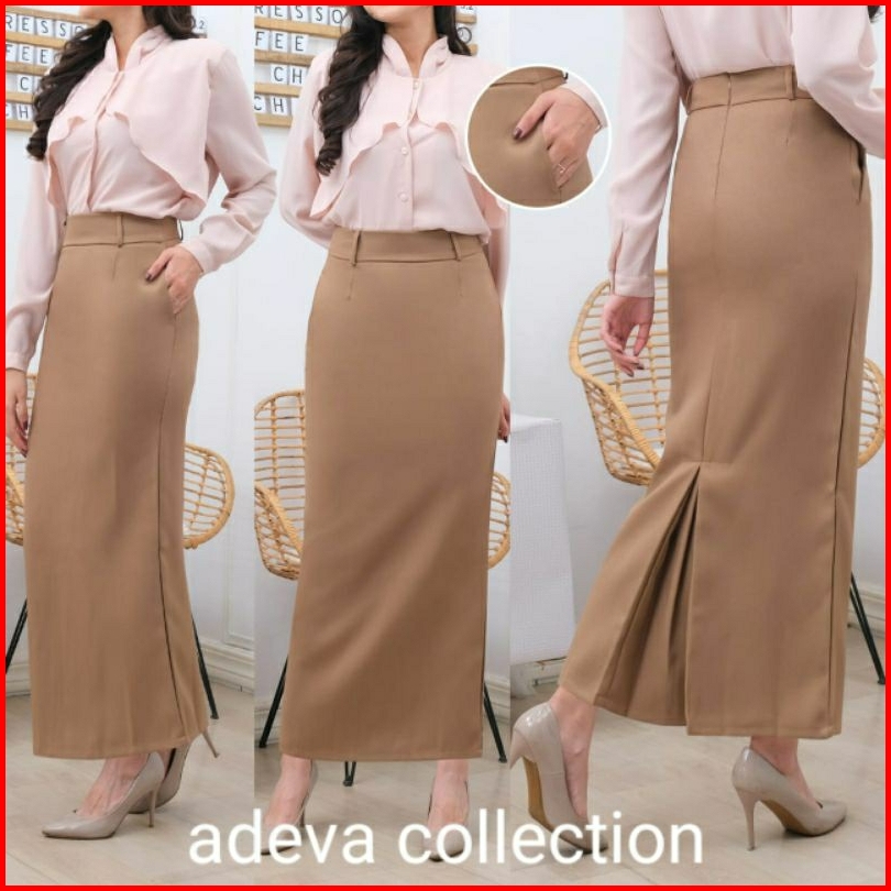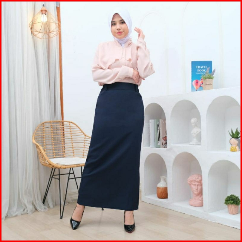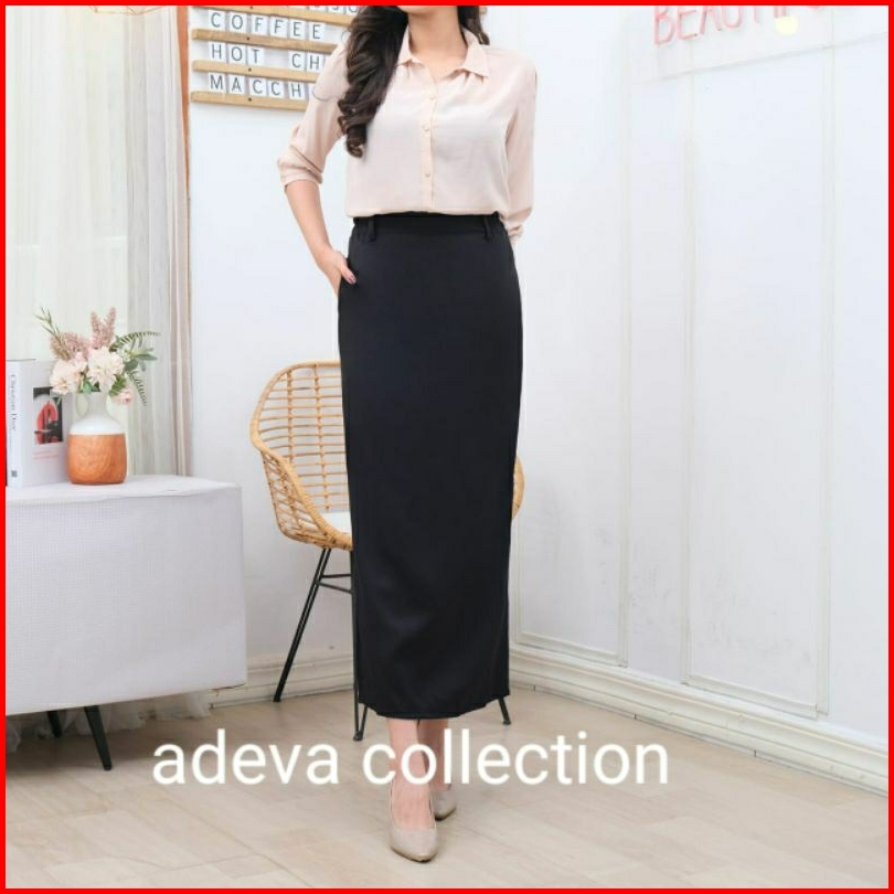 Rok Kerja Wanita Panjang Span Kantor Hitam Rempel Belakang