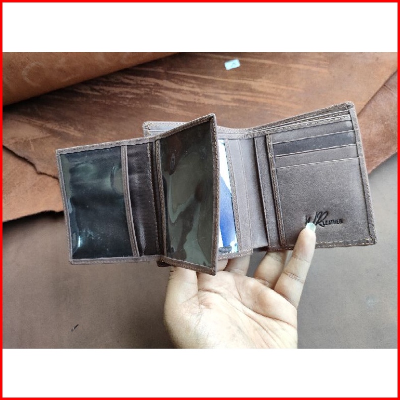Dompet Pria 100 Bahan Kulit Sapi Leather Premium Dompet Kulit Berdiri Model Lipat Berkualitas