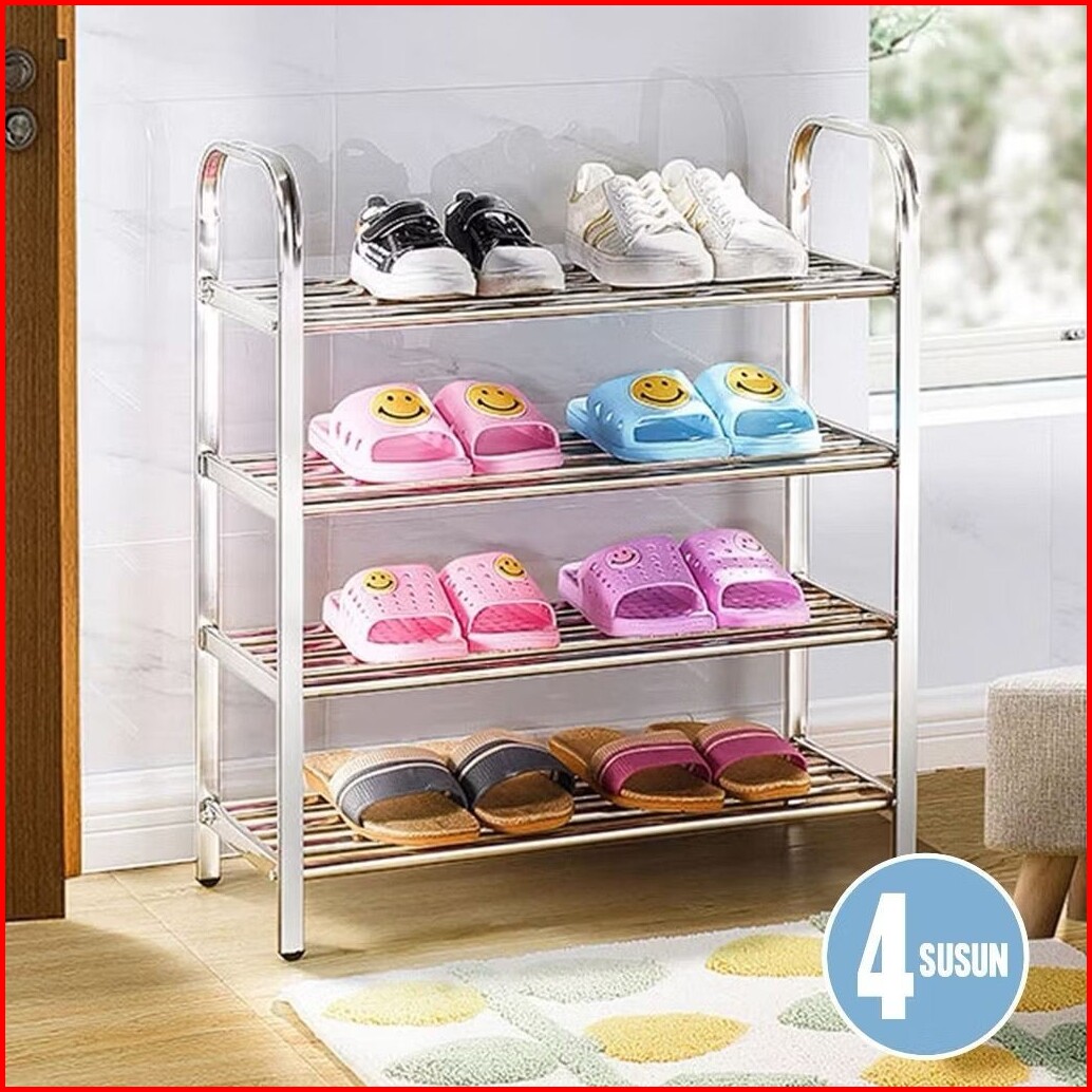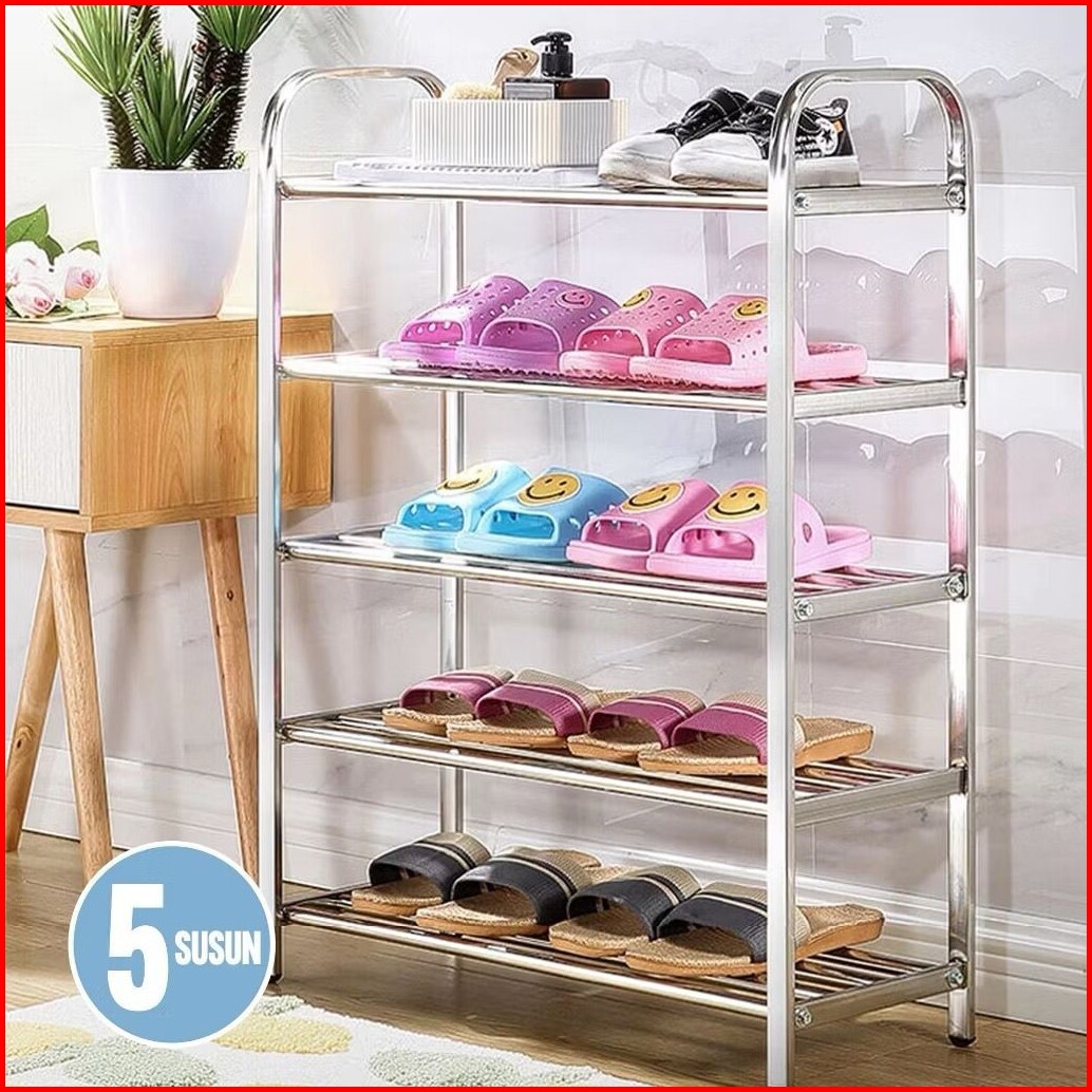 Faus Rak Sepatu Sendal Stainless Rak Sepatu Murah 3susun 4susun 5susun Anti Karat Mudah Untuk Di Bongkar Pasang