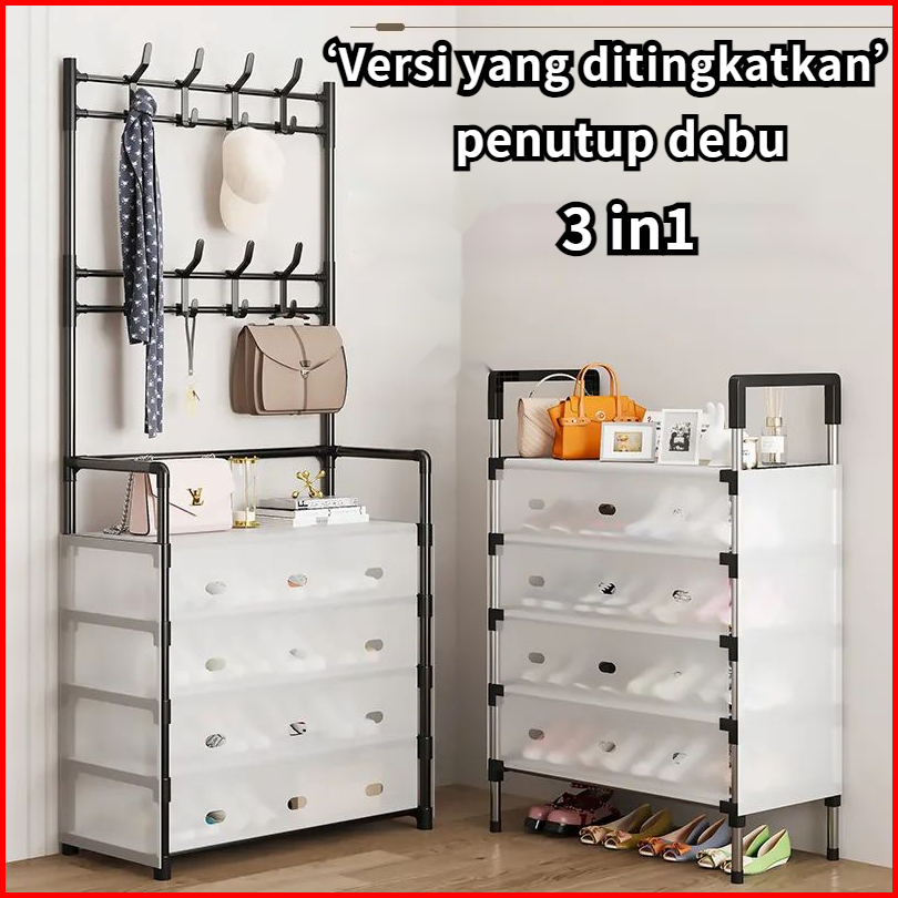 Rak Sepatu Tertutup Anti Debu Serbaguna Gantungan Tas Pakaian Rak Penyimpanan Dengan Penutup