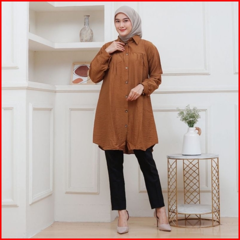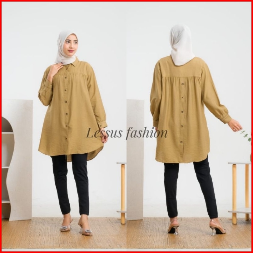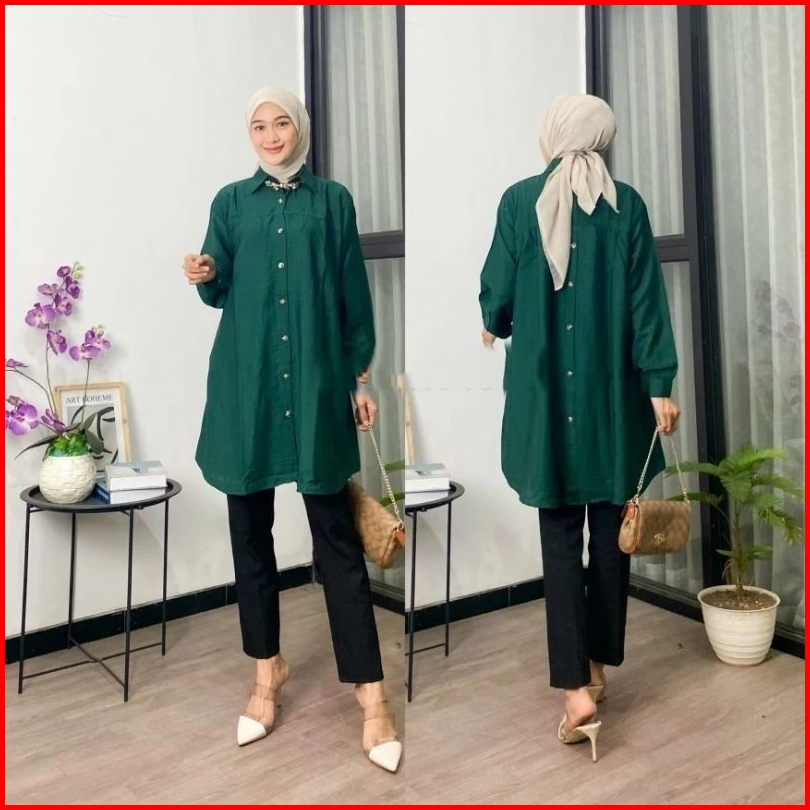 Tunik Polos Pololinen Variasi Kancing Depan Belakang Kemeja Wanita Polos Pololinen