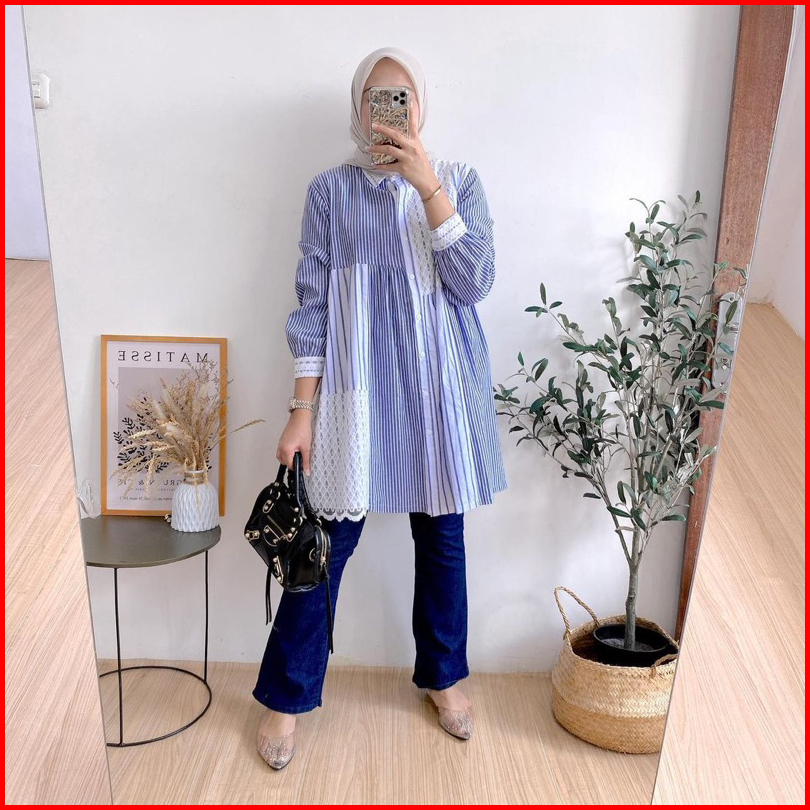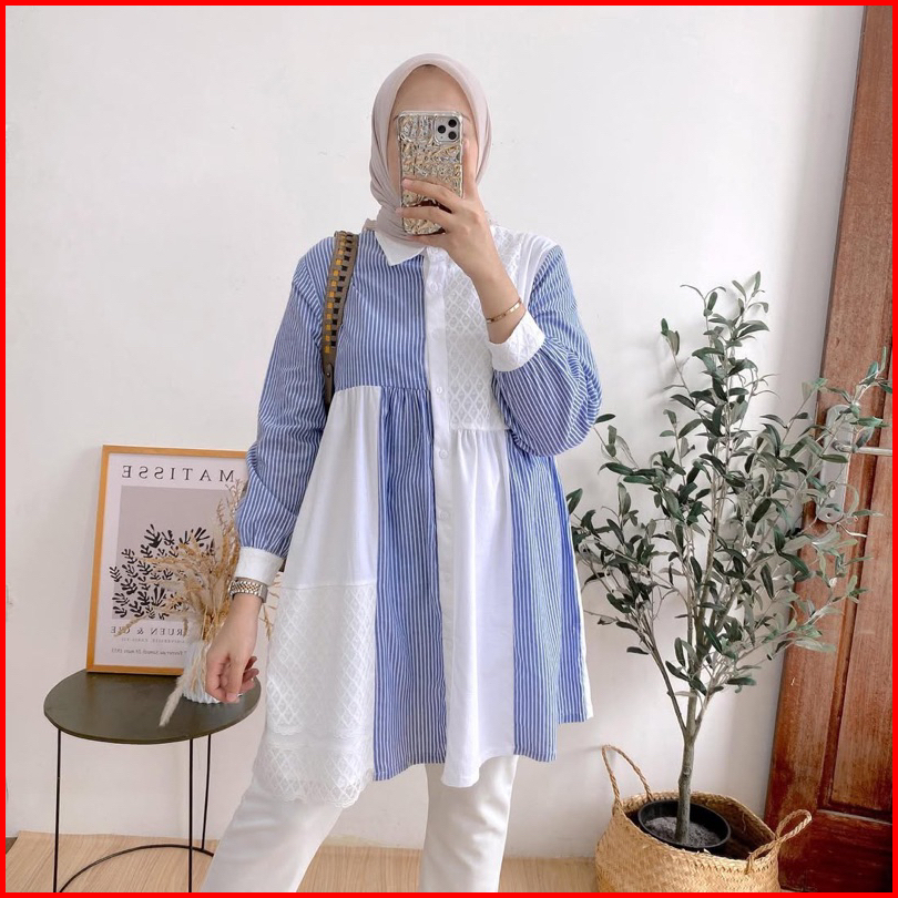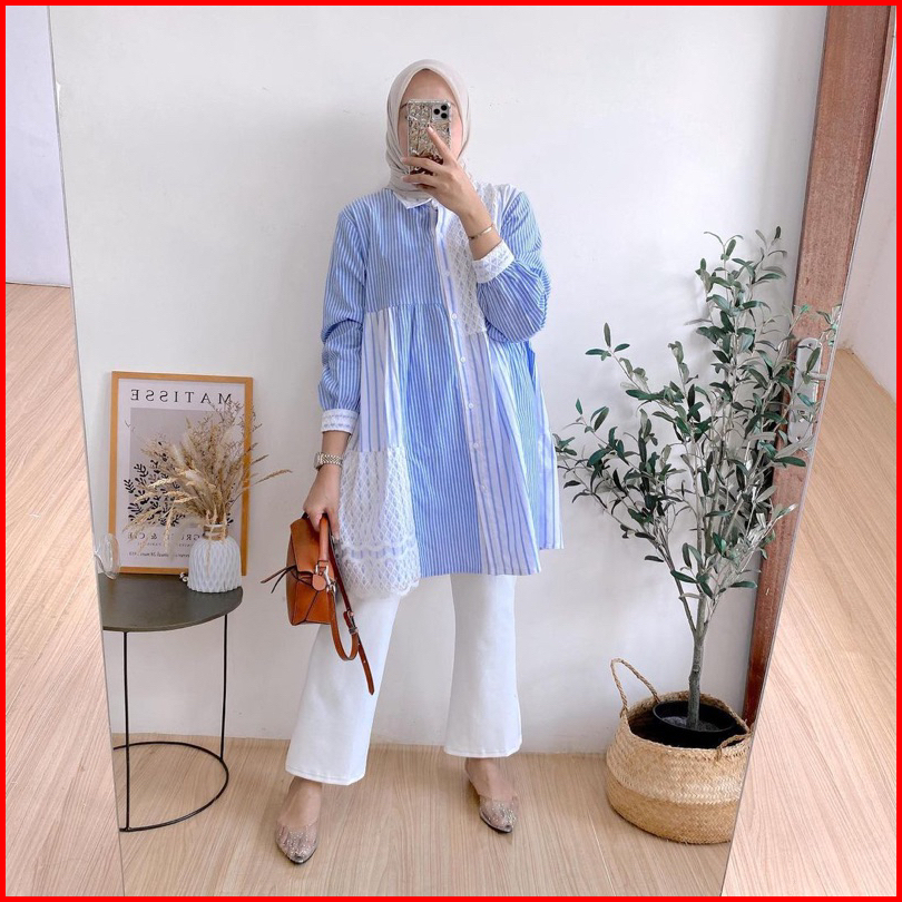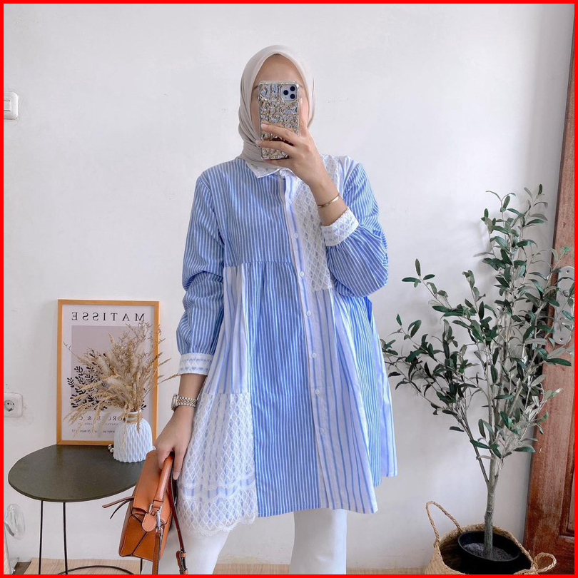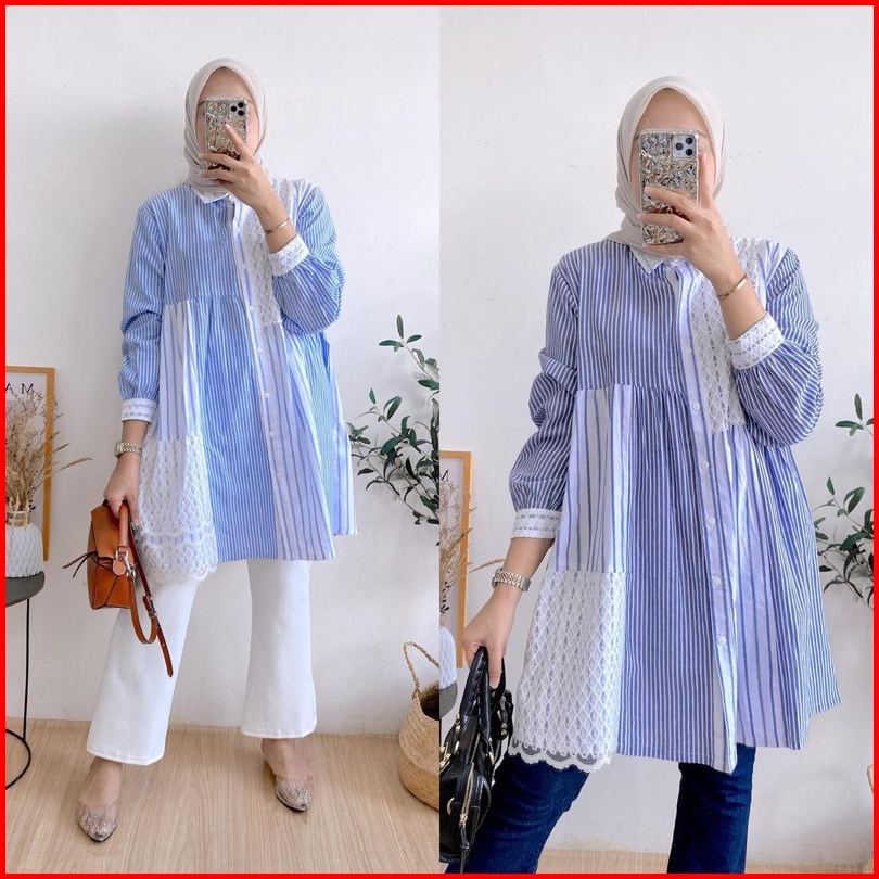 Amora Tunik Wanita Terbaru Tunik Viral Tunik Salur Mix Brukat