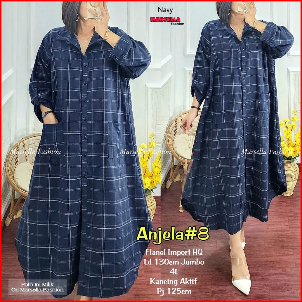 Anjela 8 By Marsella Ld 130 Allsize Long Tunik Jumbo Bigsize Bahan Flanel Import