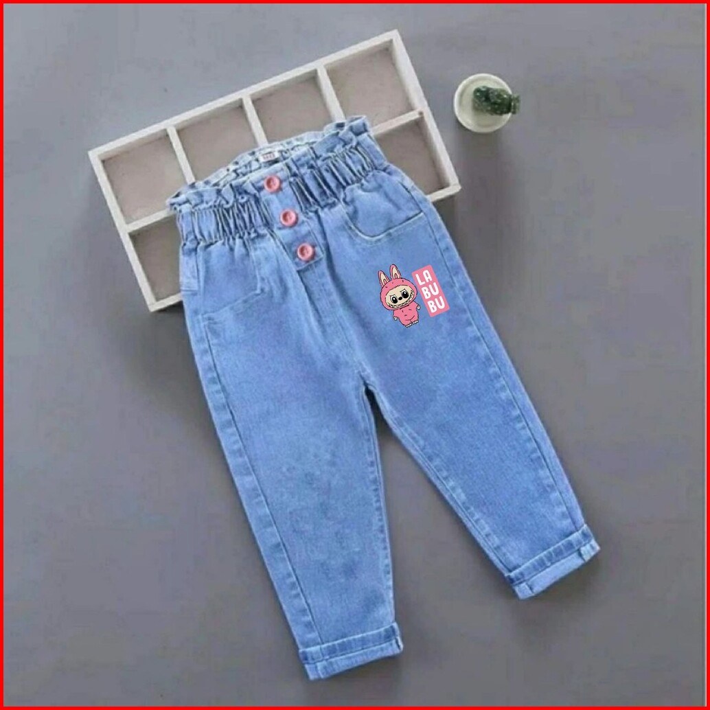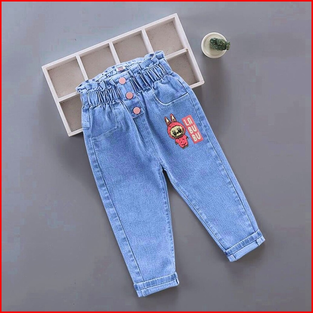 Happybu Celana Panjang Highwaist Jeans Anak Cewek Perempuan 2-7tahun