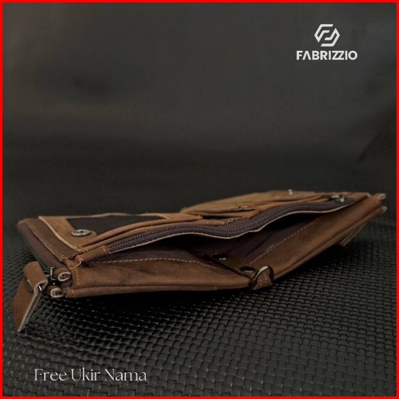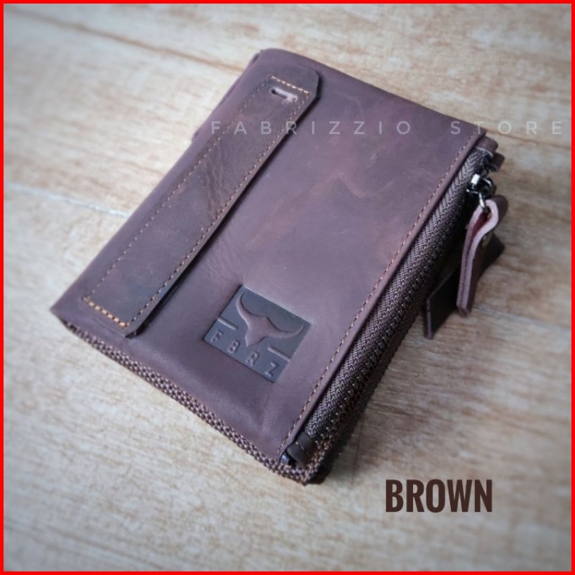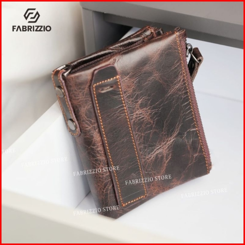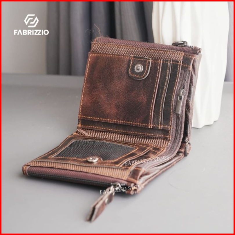 Dompet Pria Kulit Dobel Zipper Dompet Kulit Asli Dompet Cowok Kulit-milan