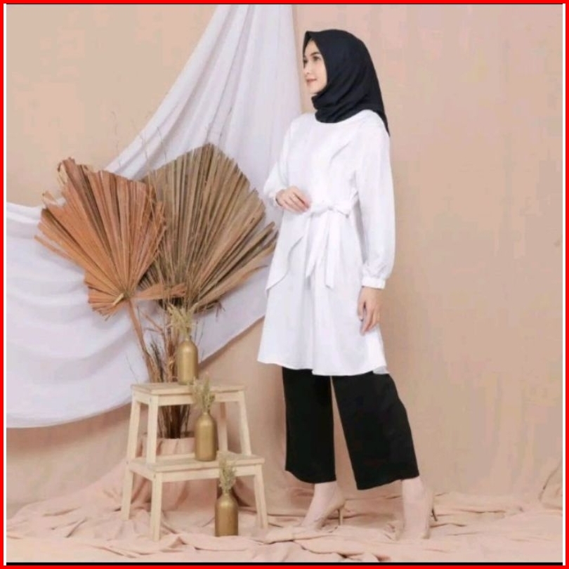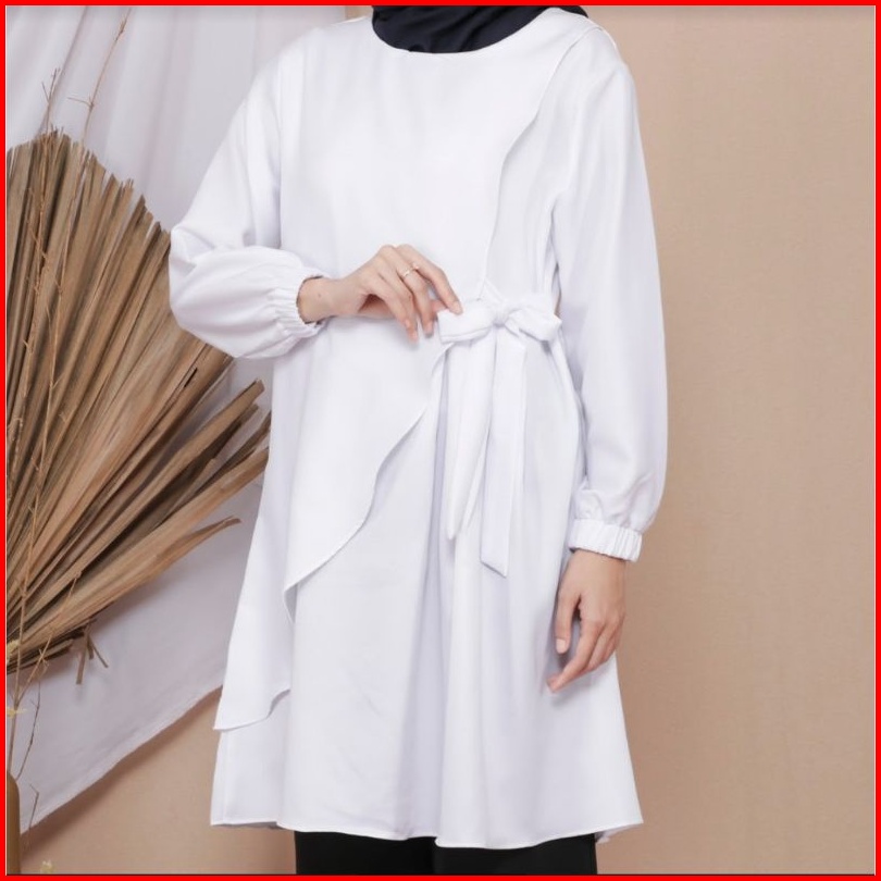 Tunik Putih Aida Kekinan Moscrepe L-xxl
