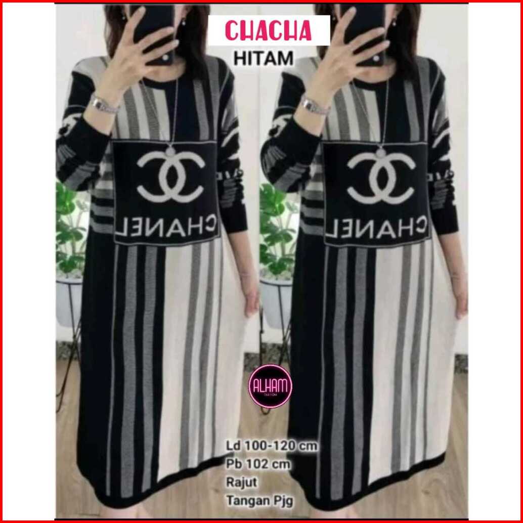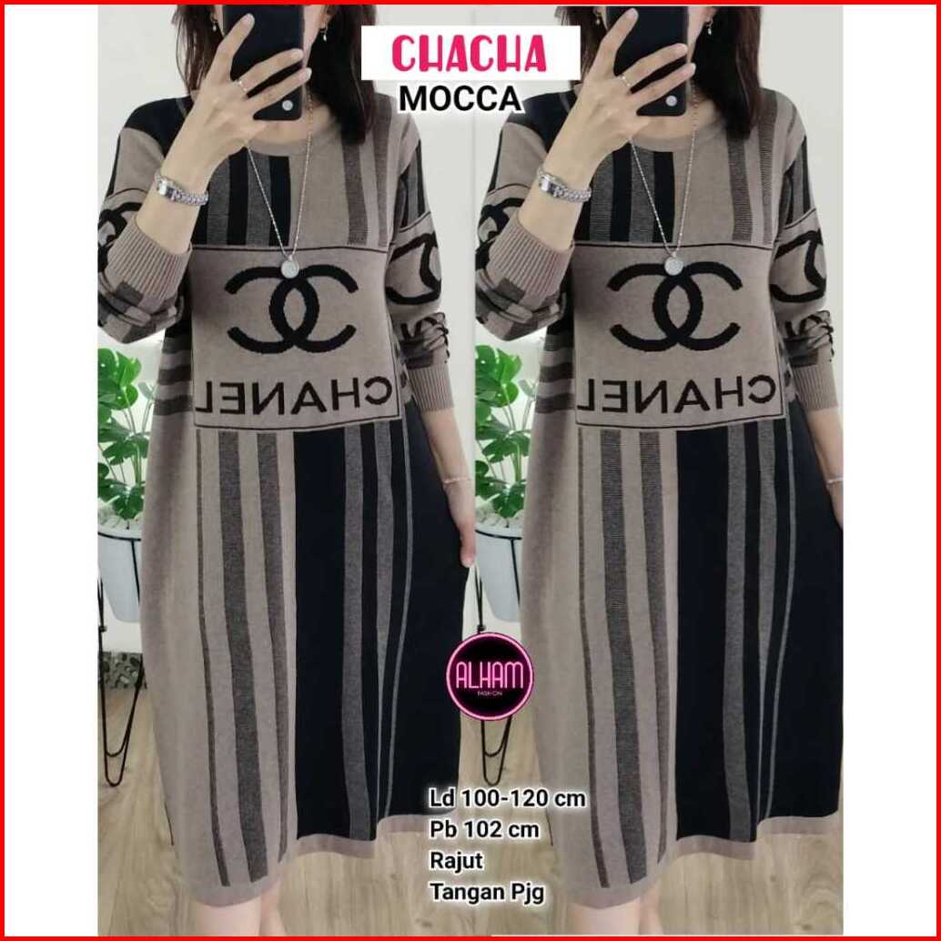 Chaha Midi Dress Knit Rajut Import Kekinian Jumbo Tunik