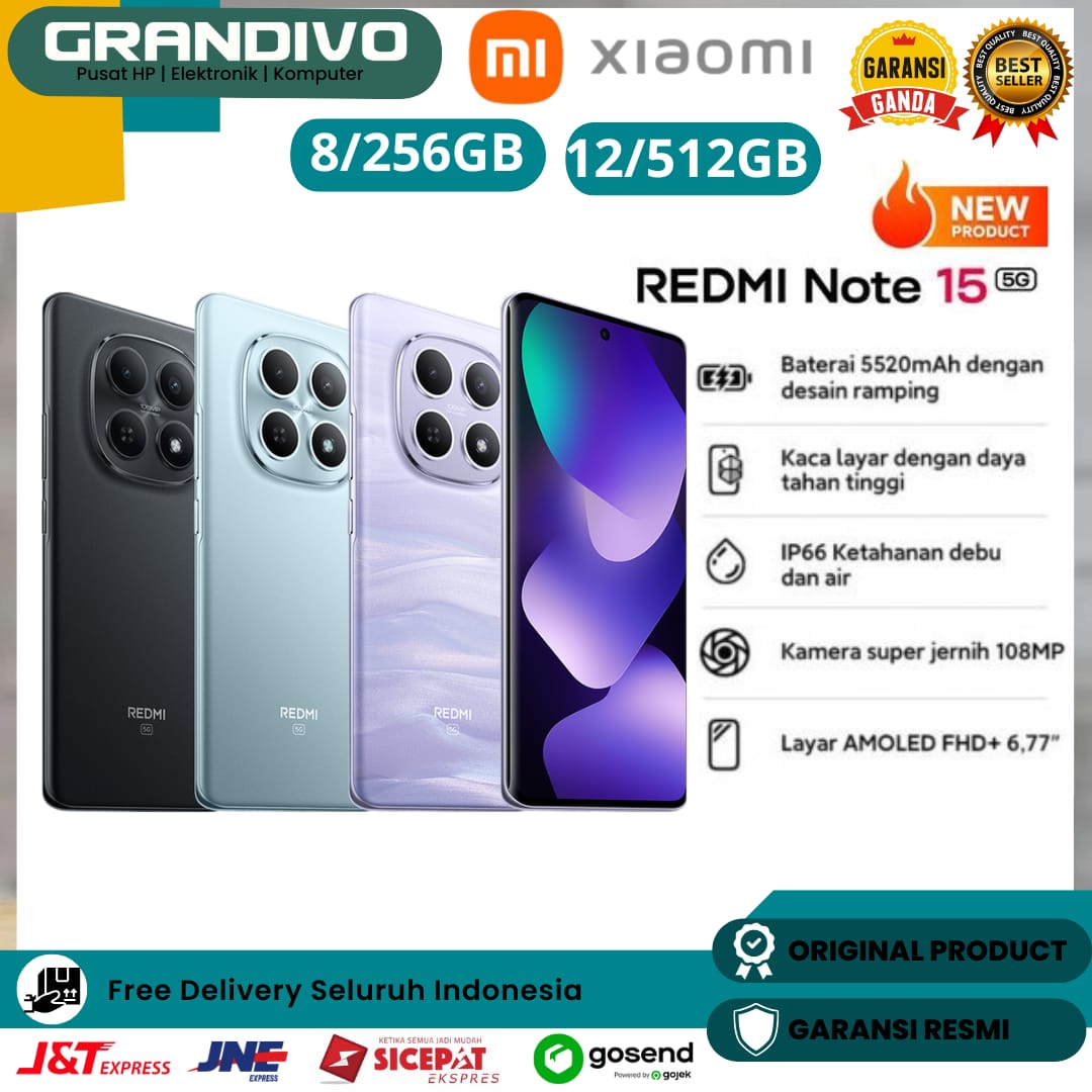 Xiaomi Redmi Note 15 5G 12/512GB | 8/256GB Baterai 5520mAh Garansi Resmi - Grandivo