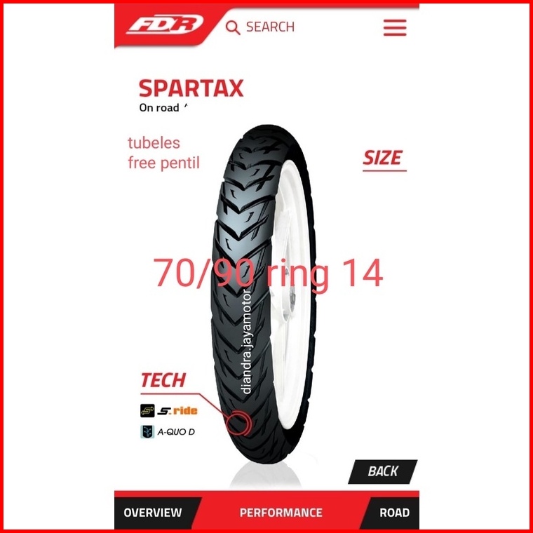 Ban Fdr Spartax Matic 70 90 - 80 90 - 90 90 Tubles Dan Tube Type Ring 14 Free Pentil Scooter Matic