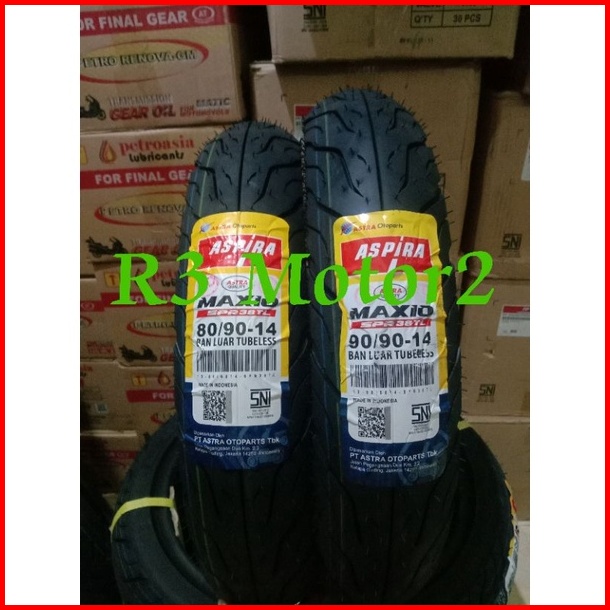 Paket Ban Tubeless Aspira 80 90-14 Dan 90 90-14 Maxio Spr38 Spr 38 Kembang Honda Untuk Matic Gratis Pentil