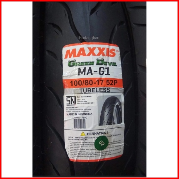 Ring 17 Maxxis Green Devil 100 80 - 17 Tubeless Original Produksi Baru Ma-g1 Free Pentil