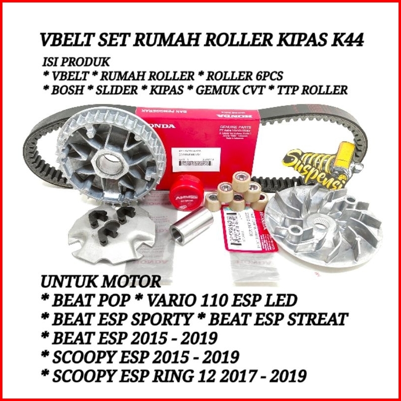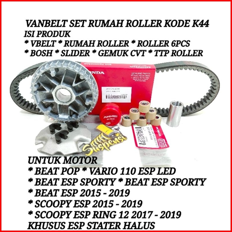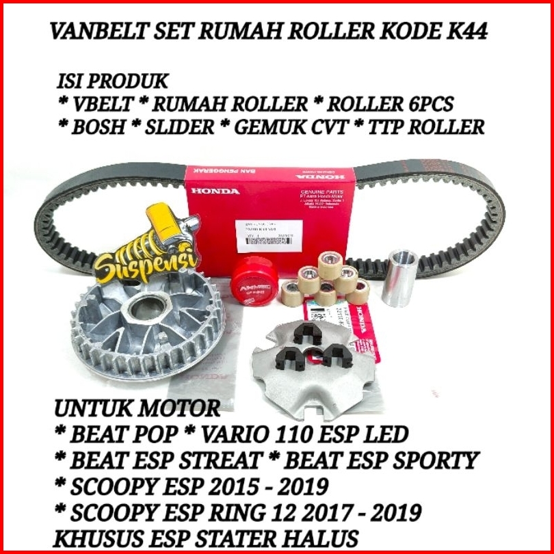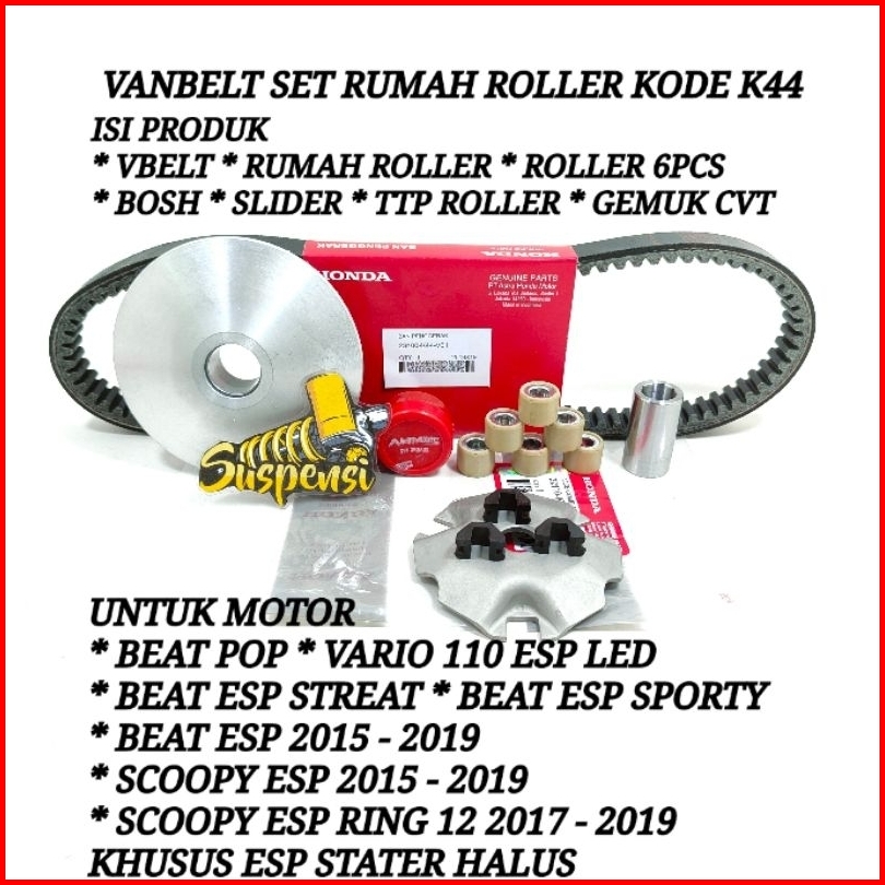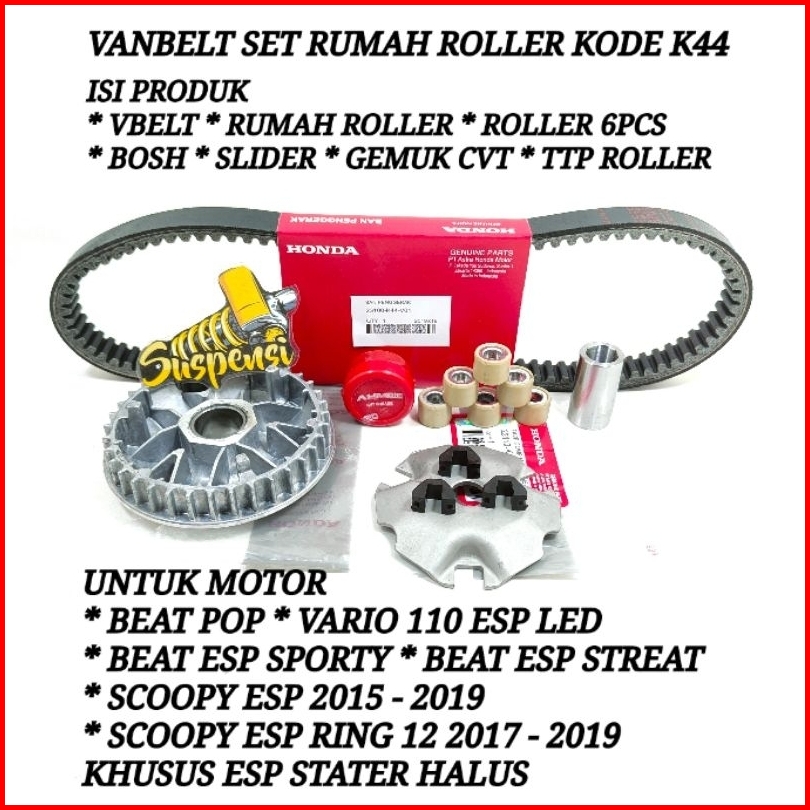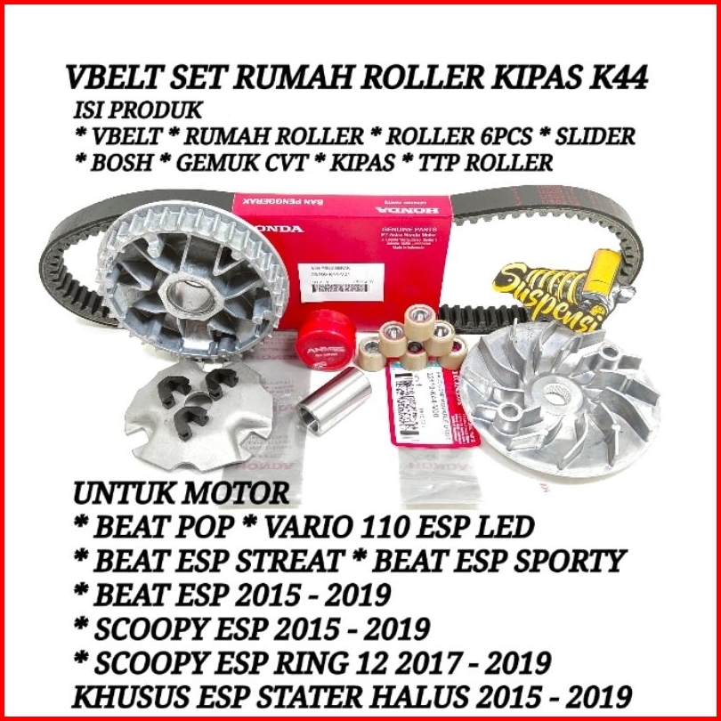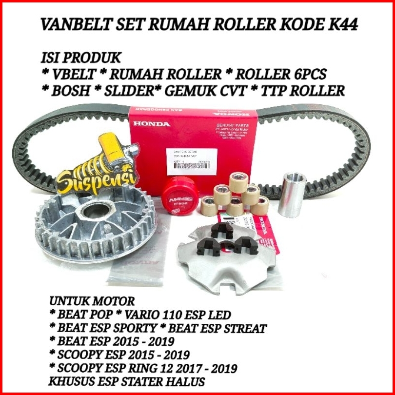 Paket Van Belt Cvt Rumah Roller Set Kipas Roller Beat Pop Beat Fi Esp Vario Fi Stater Halus K44