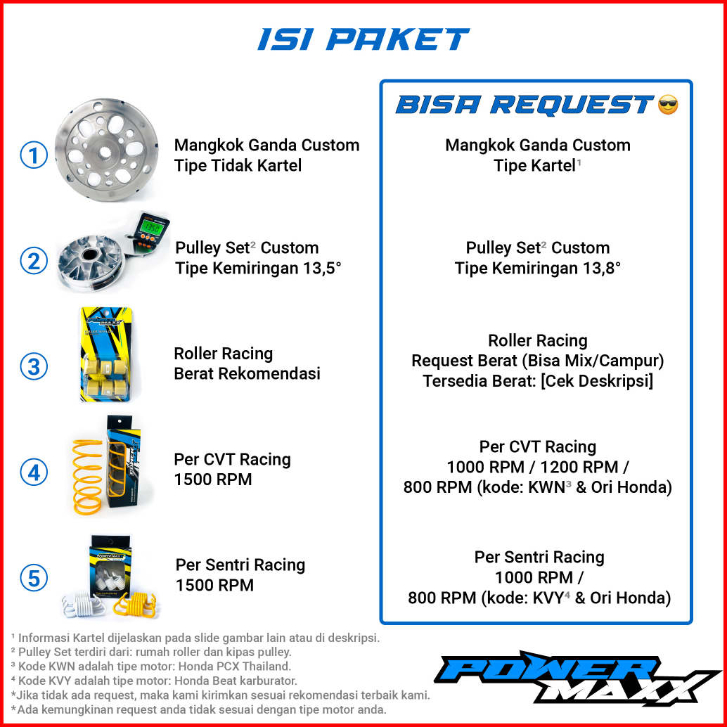 Paket Full Upgrade Kirian Cvt Beat Scoopy Vario 110 Spacy Genio Karburator Karbu Fi Esp Racing - Pulley Set Rumah Roller