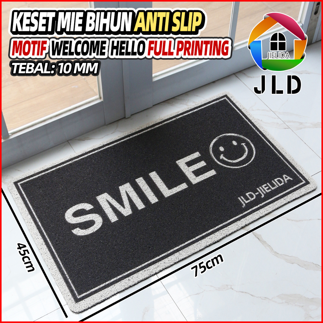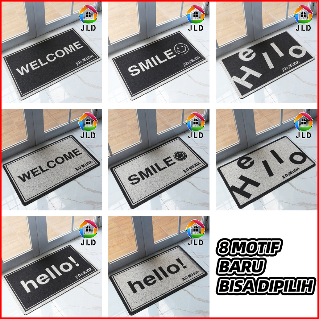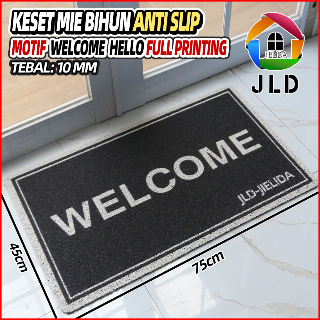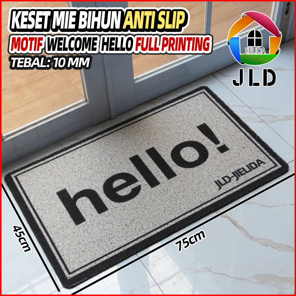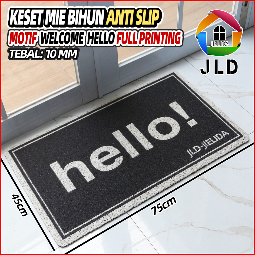 Jielida Keset Pvc Mie Bihun 45 X 75 Cm Cushion Printing Tebal 10 Mm Anti Slip Keset Kaki Motif Welcome Hello