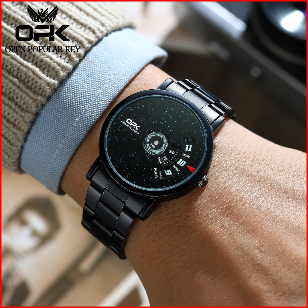 Opk Jam Tangan Pria Anti Air Original Fashion Unik Starry Night Hitam Stainless Steel Waterproof Man Watch Model 8109