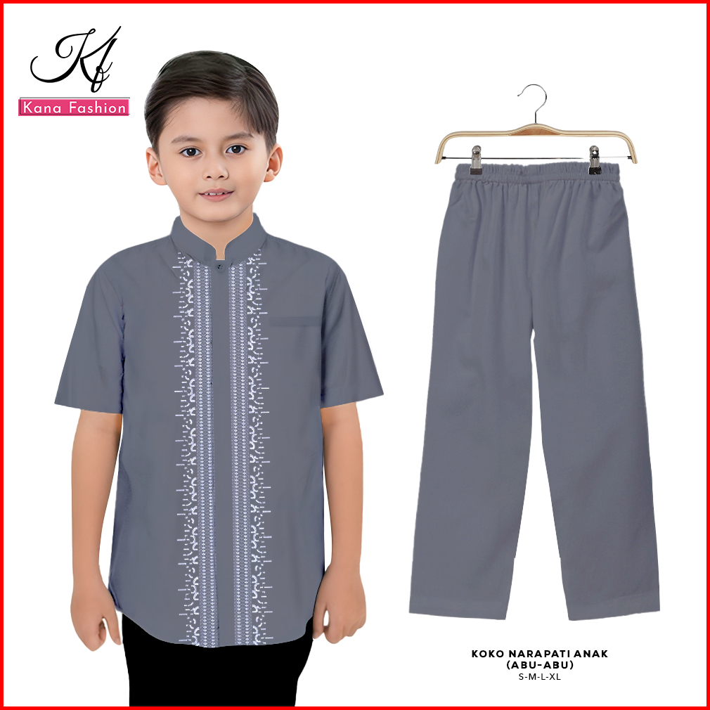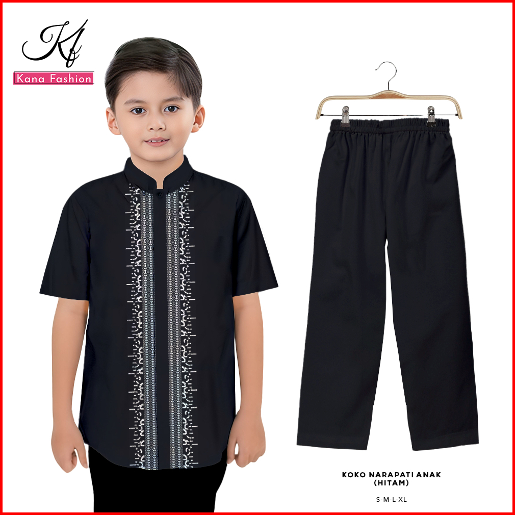 Kana Fashion Baju Set Koko Setelan Anak Laki-laki Full Bordir Premium Lengan Pendek Usia 4 - 13 Tahun Termurah Dan Terla