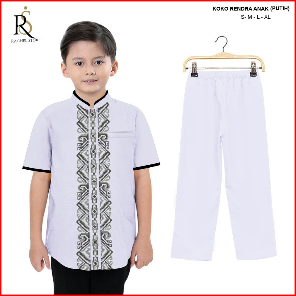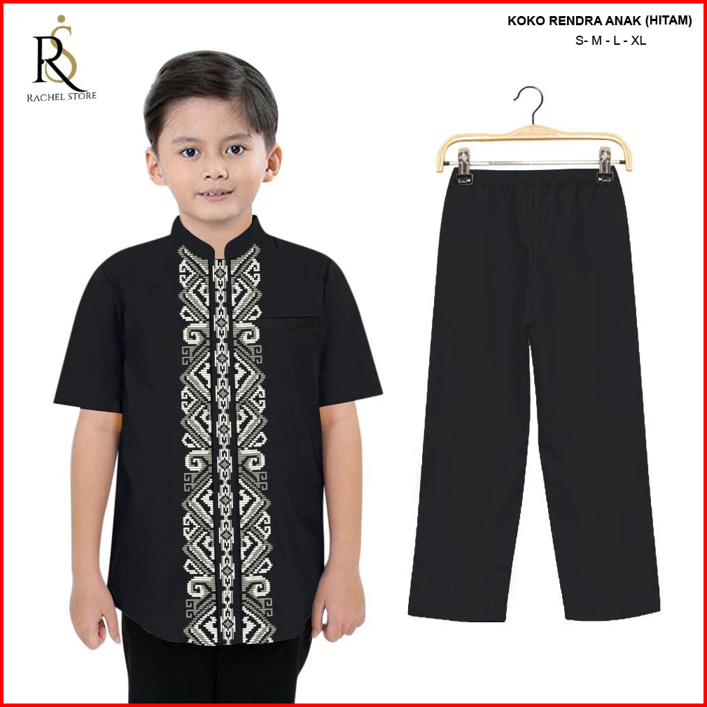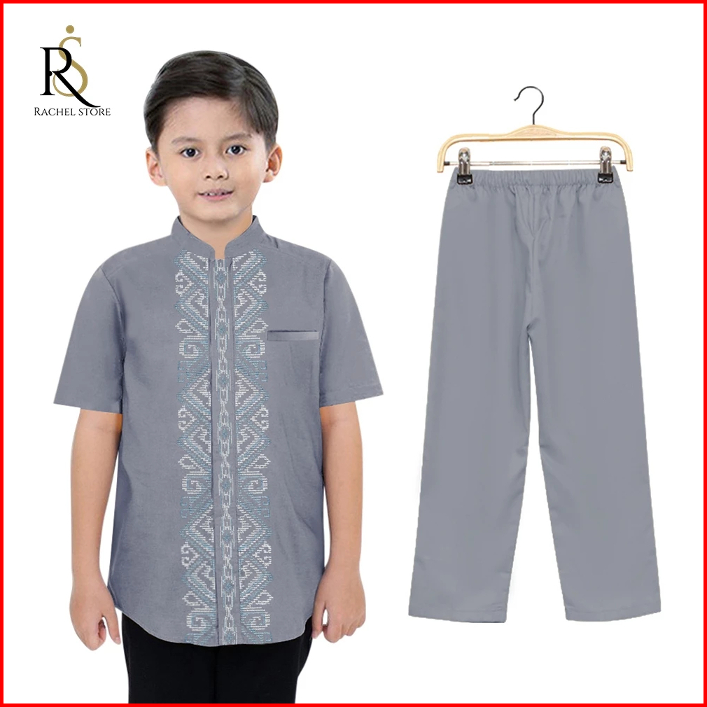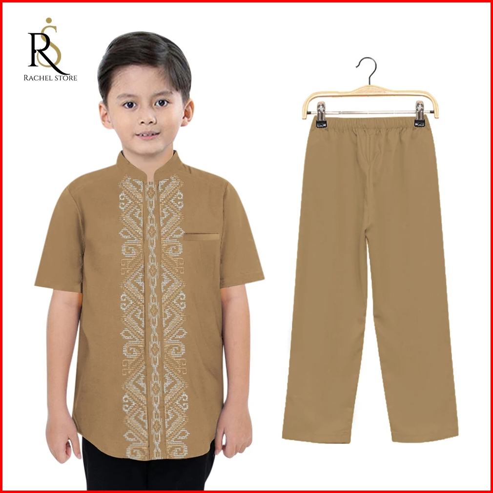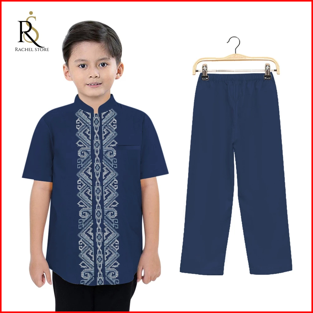 Rachel Fashion Setelan Baju Koko Kemeja Muslim Anak Laki-laki Lengan Pendek Kombinasi Bordir Batik Premium 4-10 Tahun Te