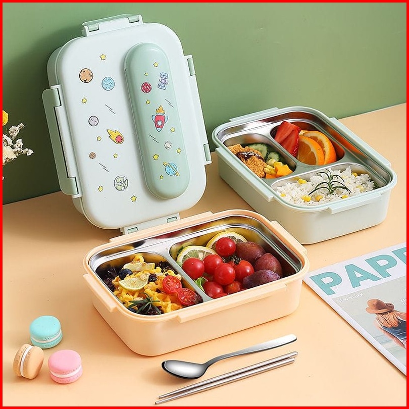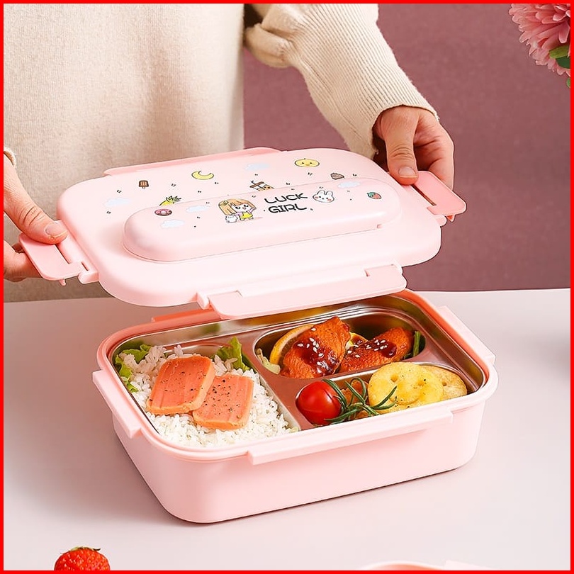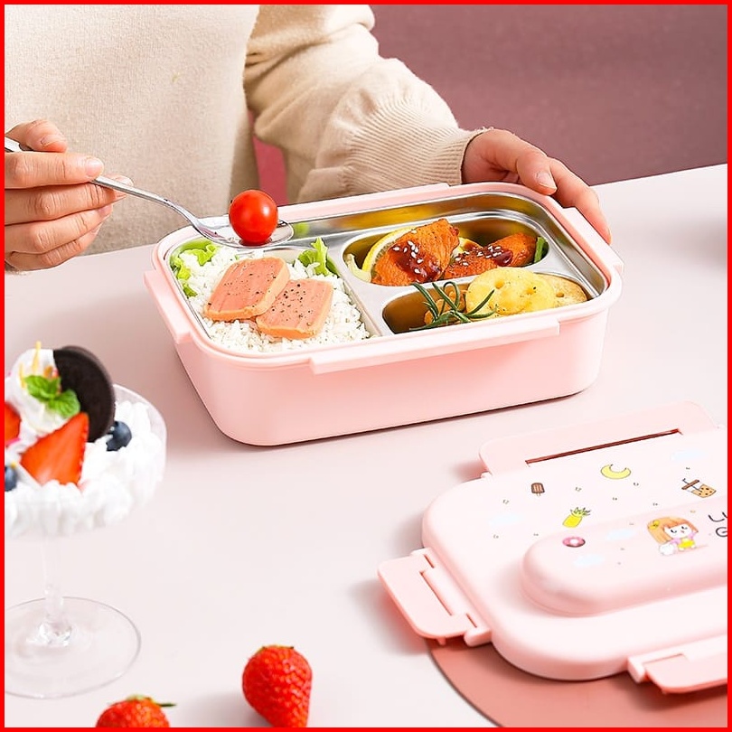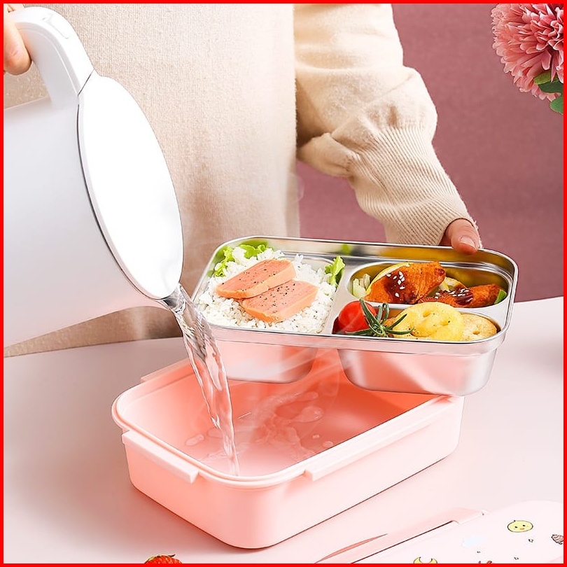 Panda Home Kotak Bekal Anak 3 Sekat Stainless Steel Lunch Box Kids Set Free Sendok Sumpit Dan Stiker
