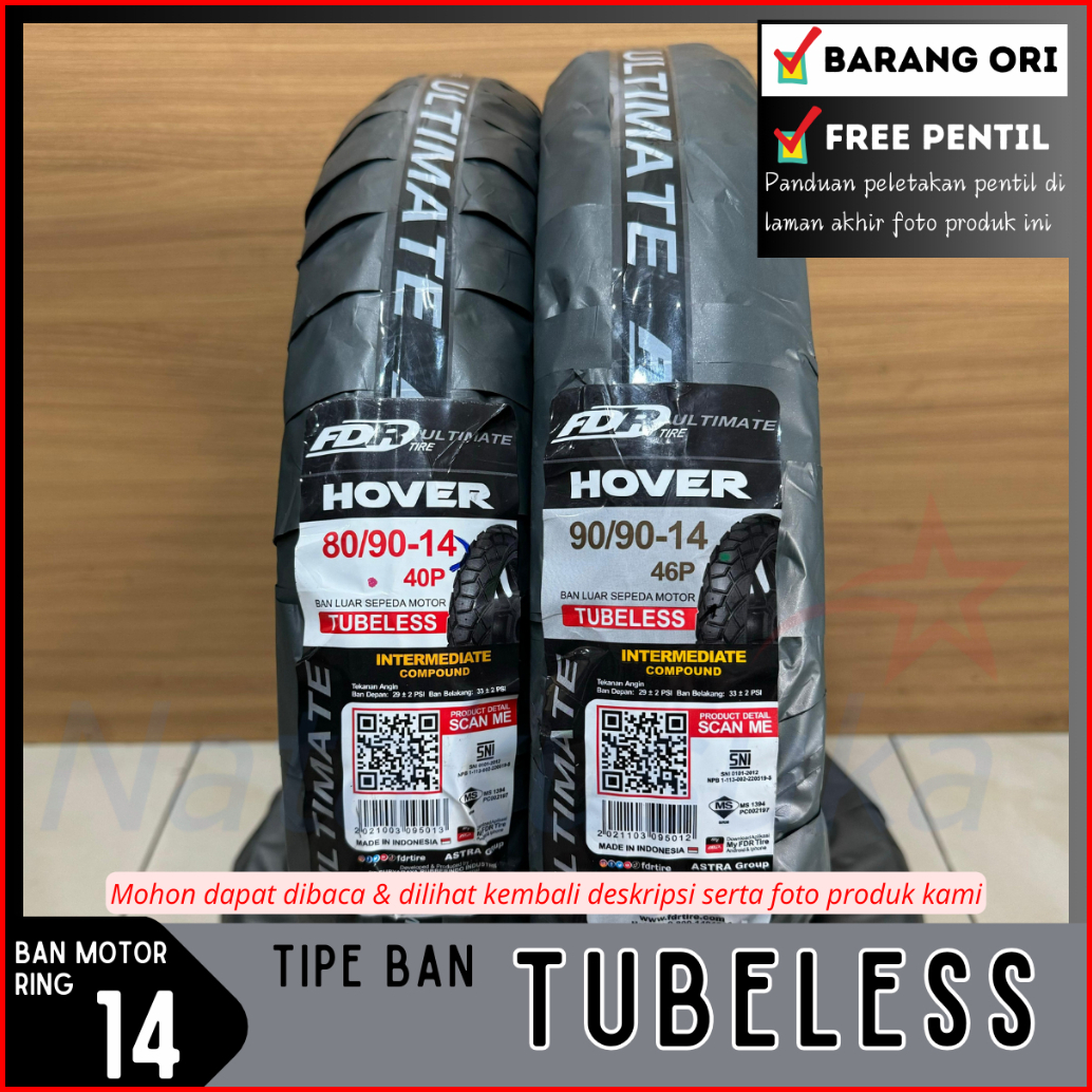 Paket Ban Motor Fdr Hover 80 90 90 90-14 Tubeless Tl Motor Metic