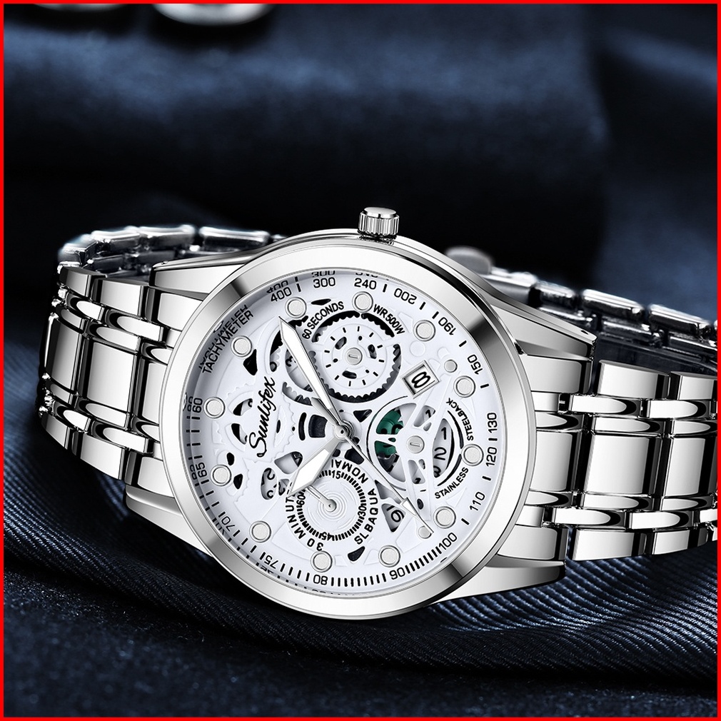 Sunlifex Jam Tangan Pria 9001 Original Display Kuarsa Anti Air Tali Stainless Steel Santai Mode Jam Tangan Cowok
