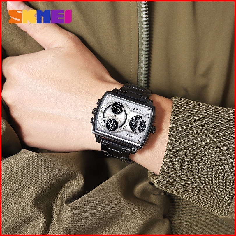 Skmei 2229 Jam Tangan Pria Digital Analog Tali Stainless Rantai Tahan Air Mgos