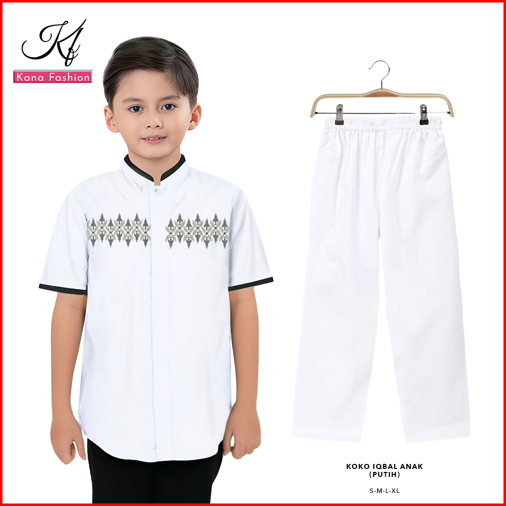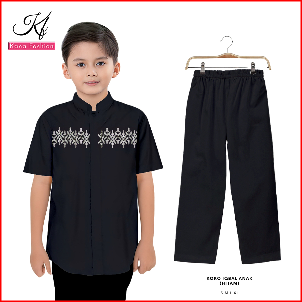 Kana Fashion Baju Setelan Koko Anak Muslim Laki-laki Kombinasi Bordir Batik Premium Lengan Pendek Bahan Toyobo Adem Terb