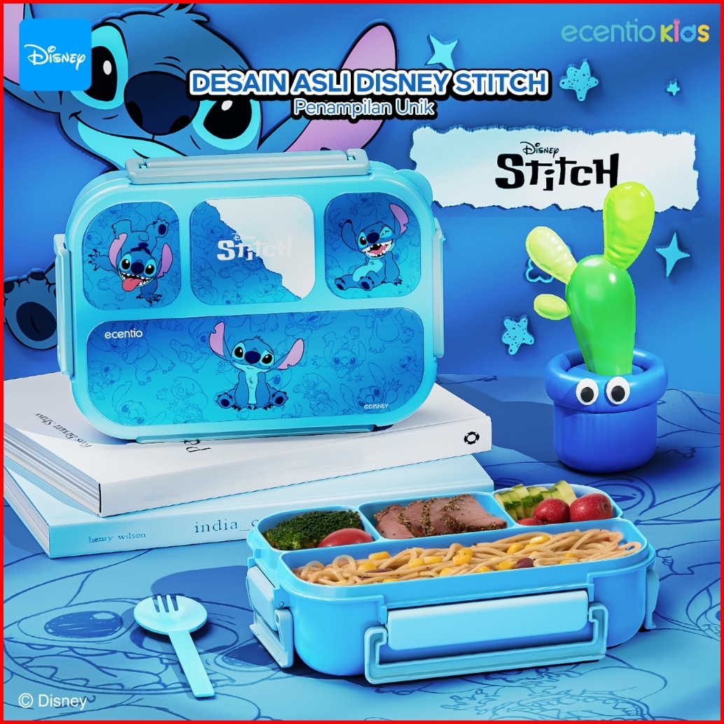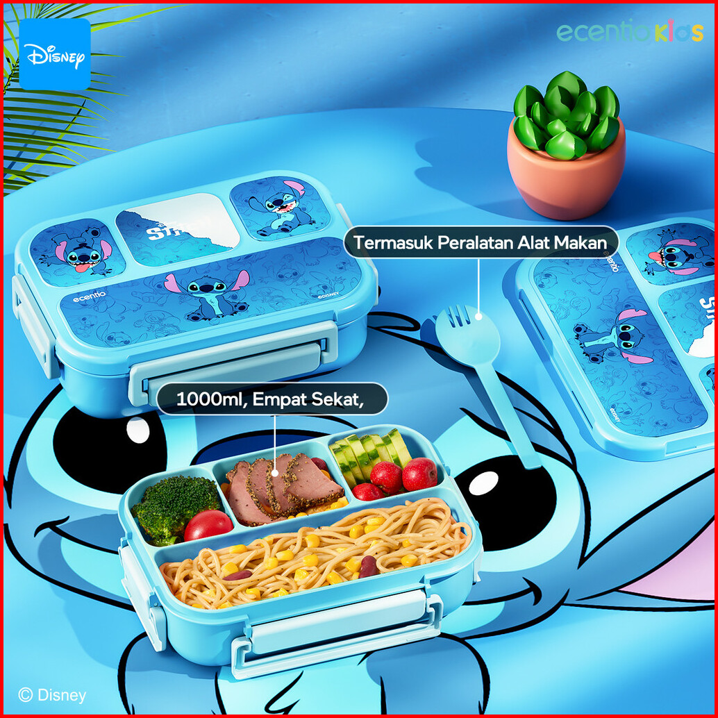 Ecentiokids Disney Original Losto Stitch Kotak Makan Bekal Makan Anak 4 Sekat Anti Tumpah Lunch Box 1000ml Bpa Free Deng