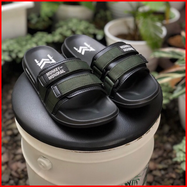 Monkey Monorail - Slide Black Army Sandal Sandal Slide Pria Monkey Monorail