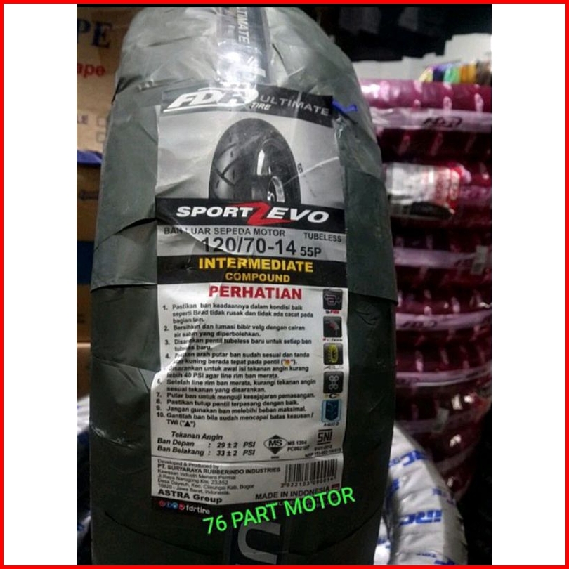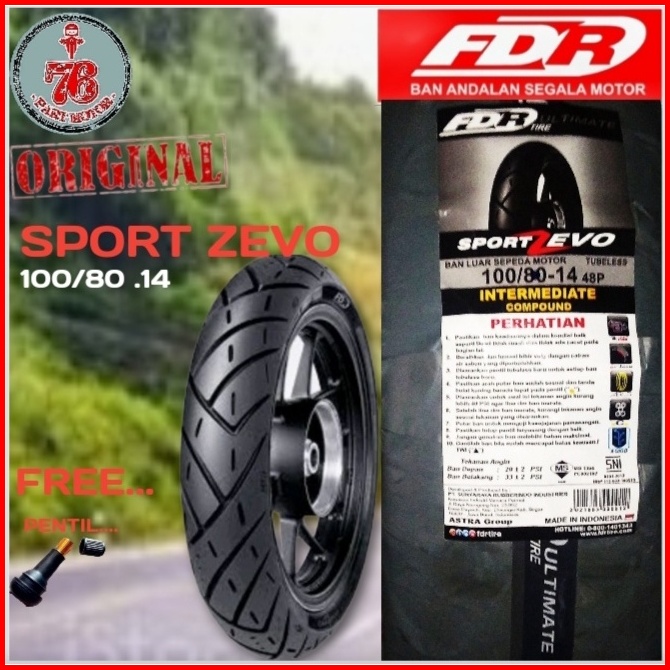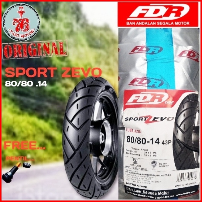 Promo Ban Tubeless Fdr Sport Zevo -80 80.14 -90.80. 14 -100 80. 14 -110 80.14 -120 70.13 -120 70.14 -140 70.13 Free Pent