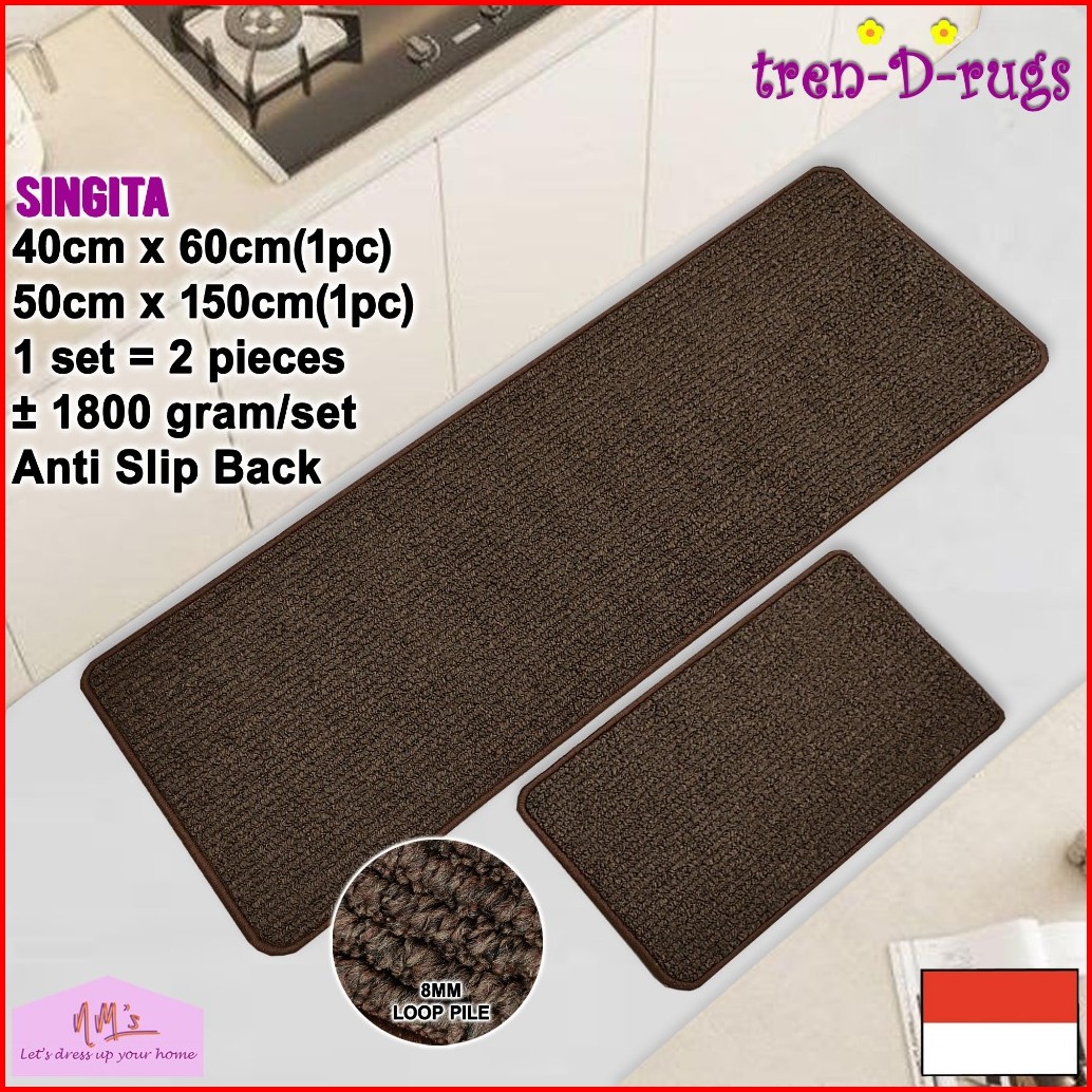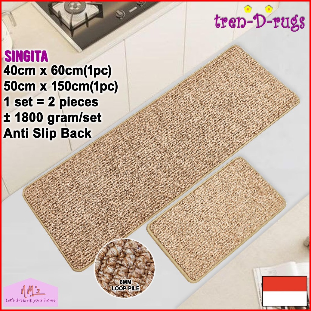 Tren-d-rugs Keset Kaki Polos Salur Stripe Line Garis Dapur Panjang Runner Lorong Alas Lantai Ruang Tidur Anti Slip 2pcs